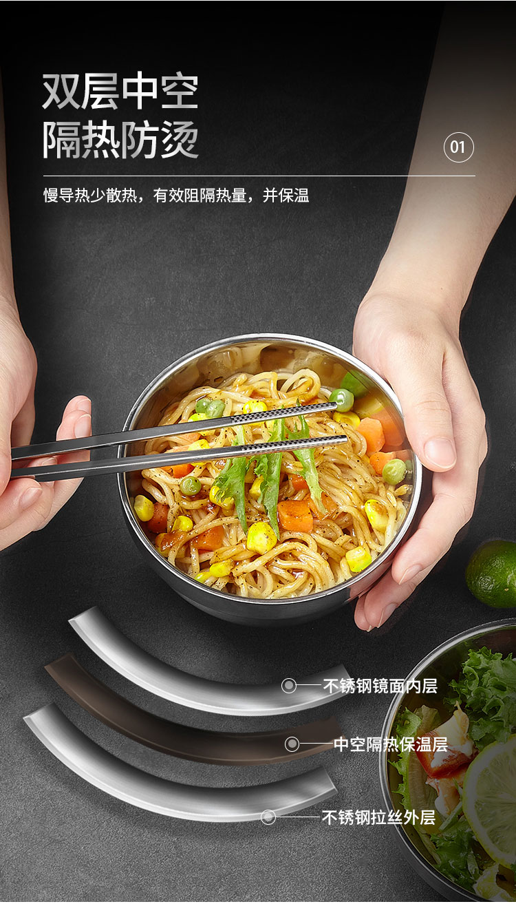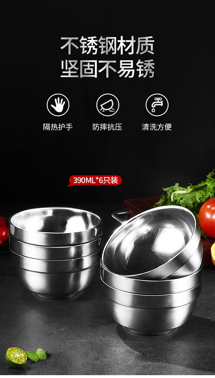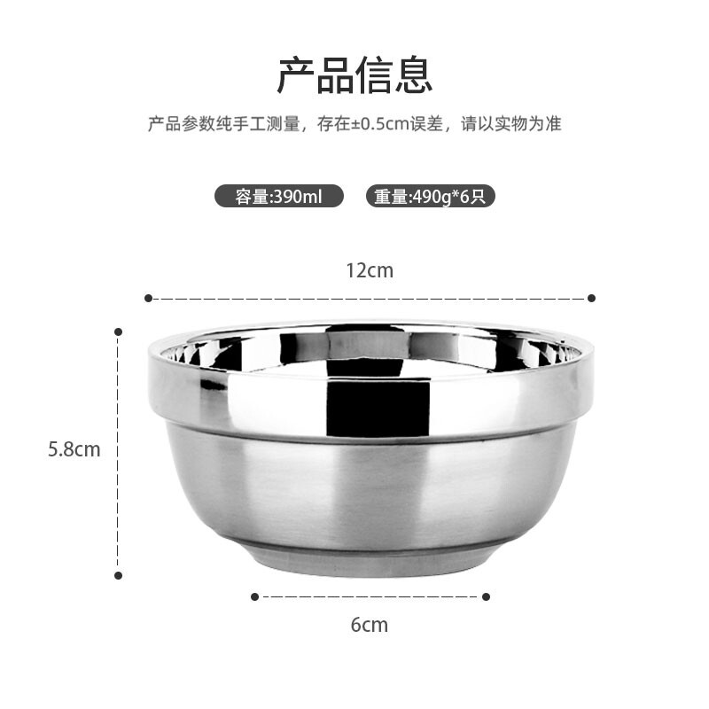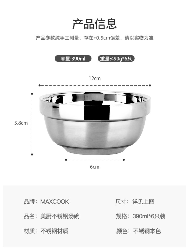 - 商品名称:美厨(maxcook)不锈钢碗 汤碗面碗6只装12cm 加厚双层隔热 MCWA-011 防烫 耐摔