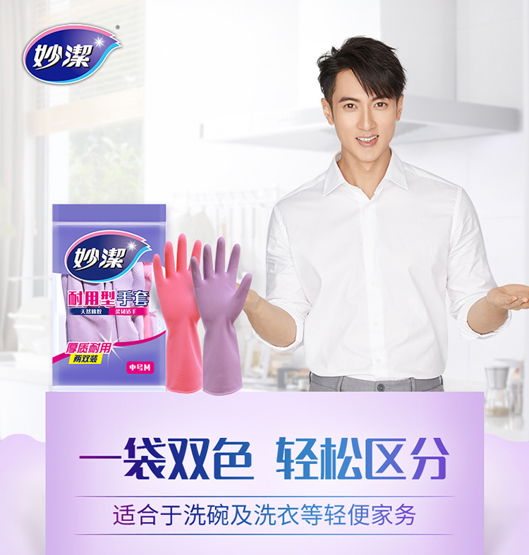 - 商品名称:妙洁灵巧型手套 清洁橡胶皮耐用家务厨房洗碗衣四季 中号2双装