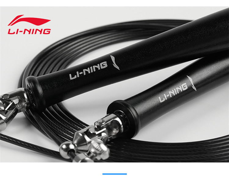 李宁(LI-NING) 770黑色钢丝跳绳 铝合金手柄专业竞速跳绳钢丝带轴承可调节中考专用跳绳成人家用运动健身器材