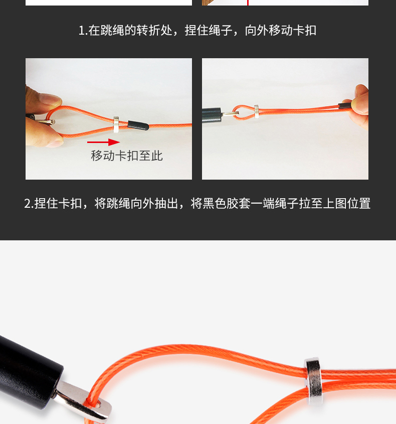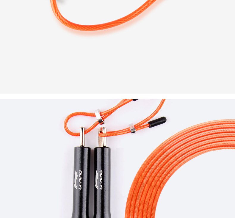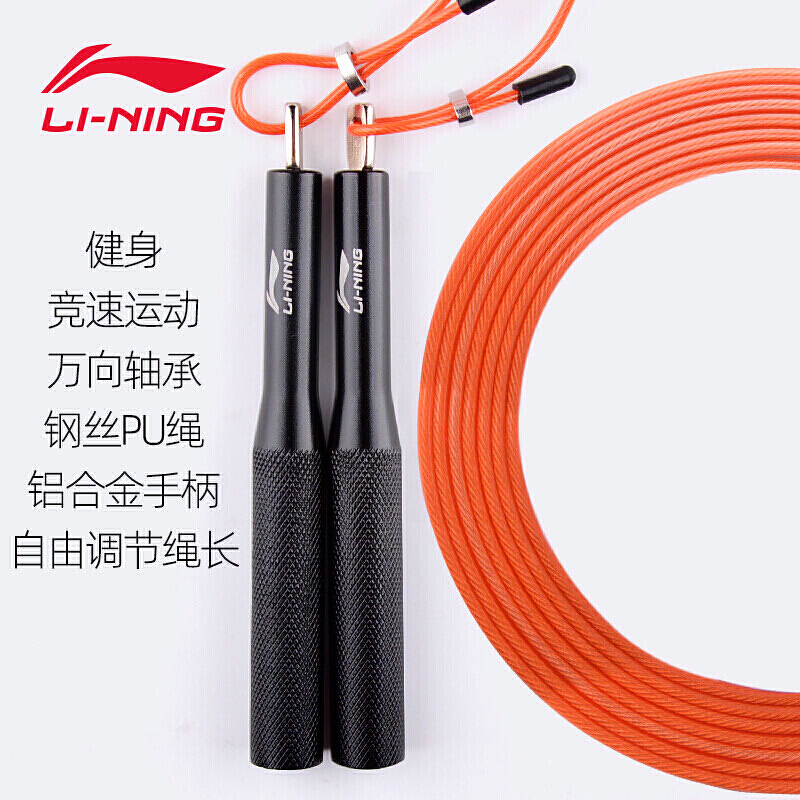 商品名称:李宁(LI-NING) 303-黑橘色跳绳 钢丝跳绳 细绳铝合金手柄专业成人塑身家用健身器材学生中考 竞技跳绳