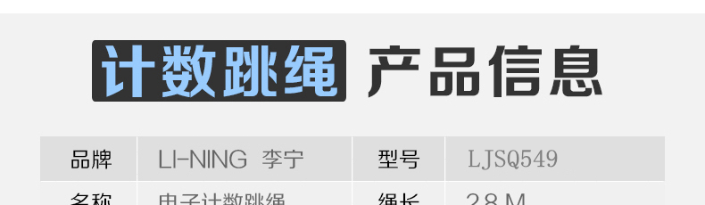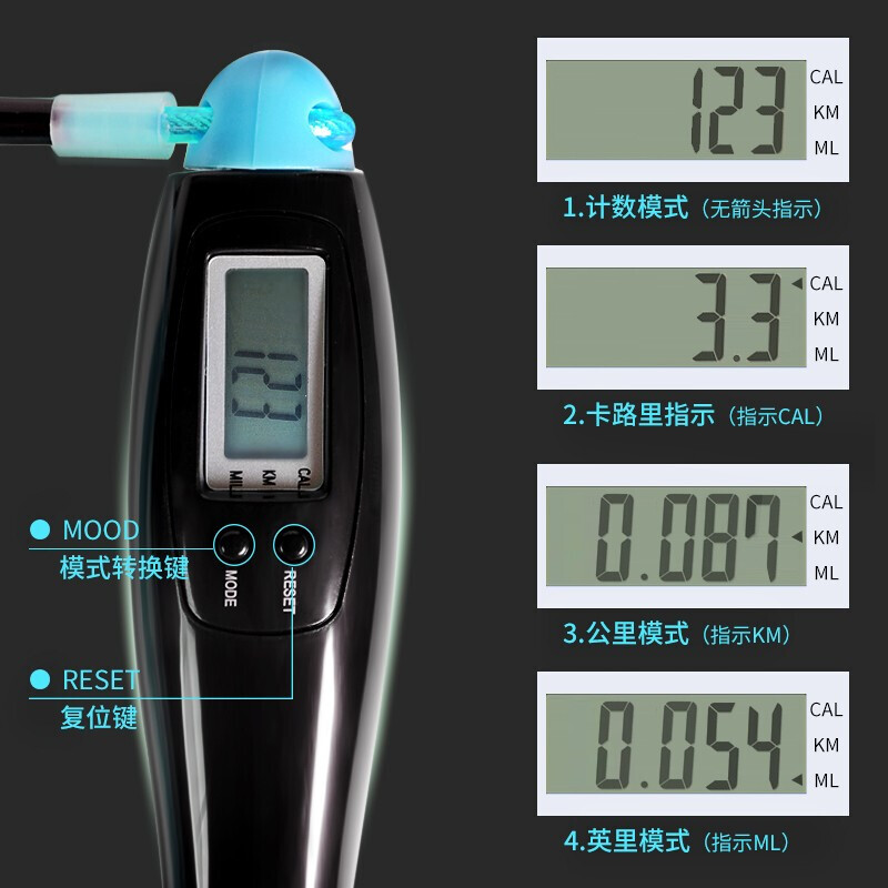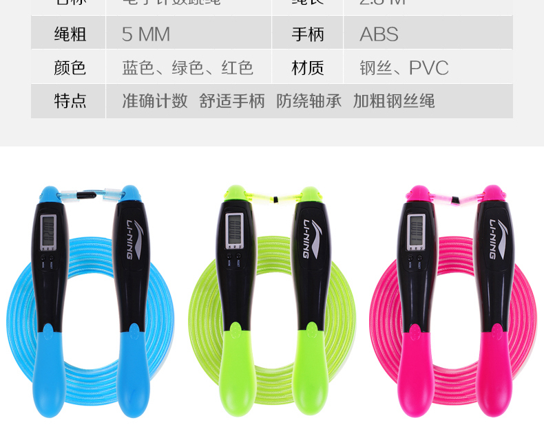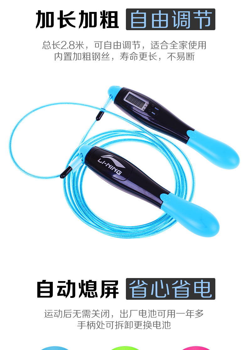 商品名称:李宁(LI-NING)549蓝色跳绳计数无绳球无线男女小学生儿童成人钢丝绳家用体育健身器材