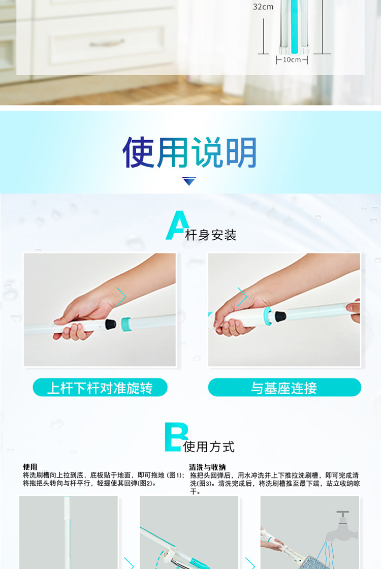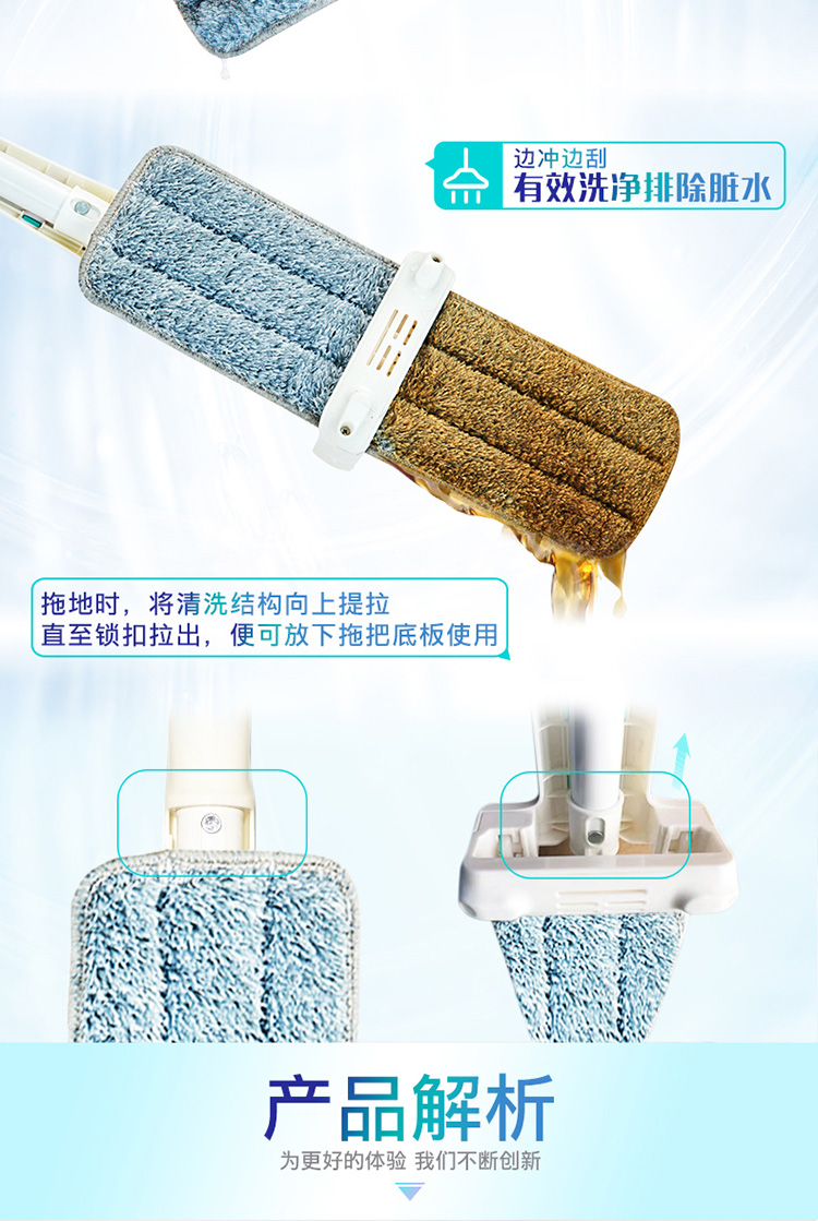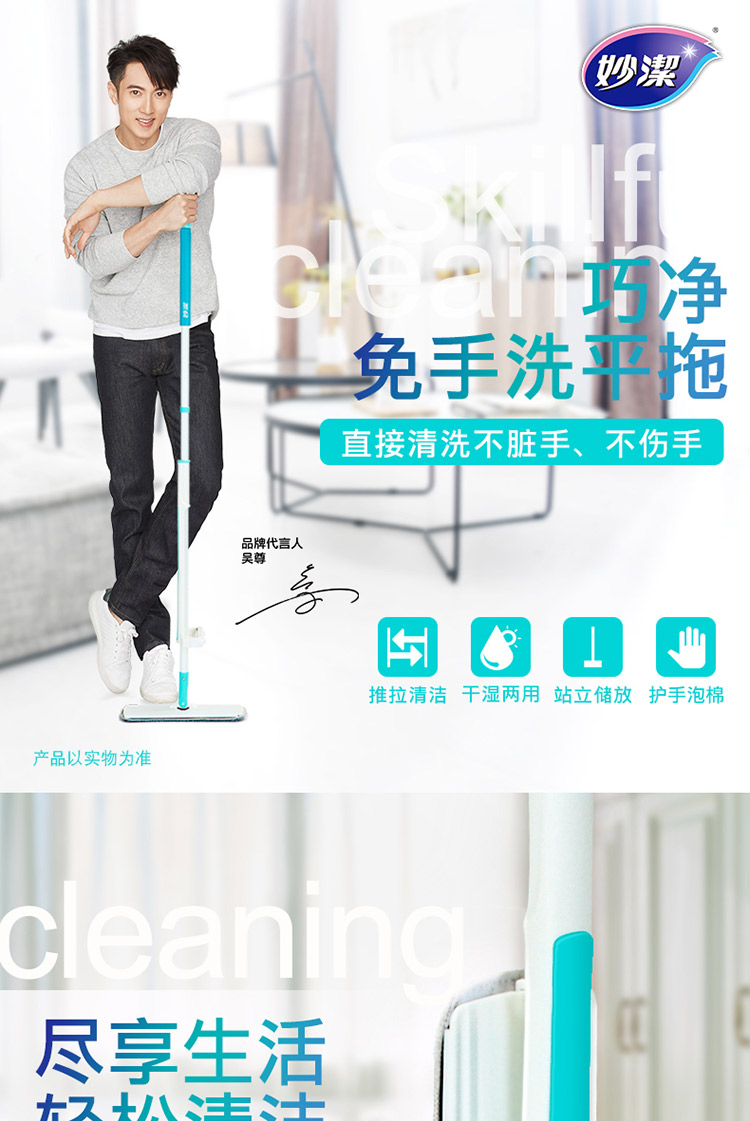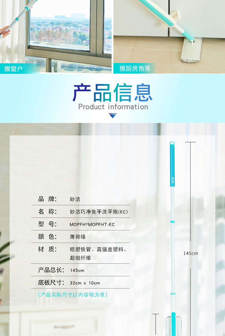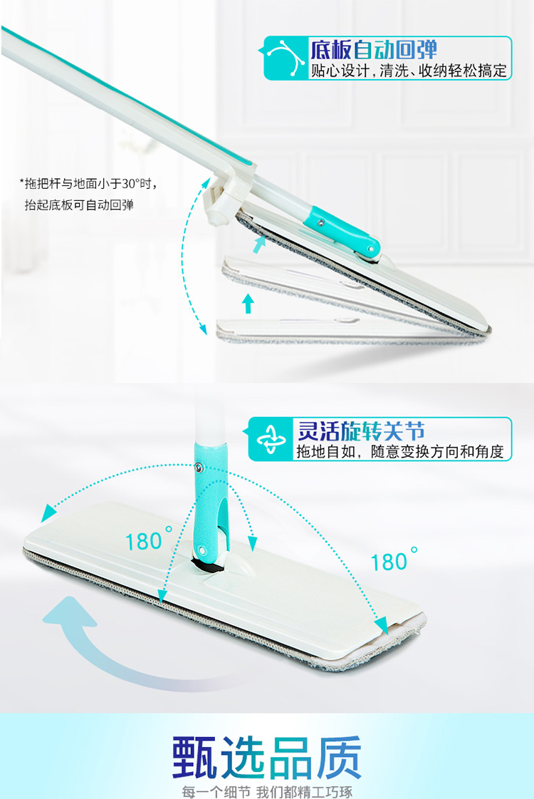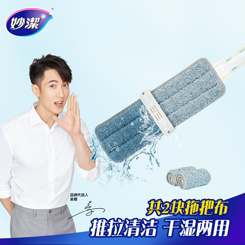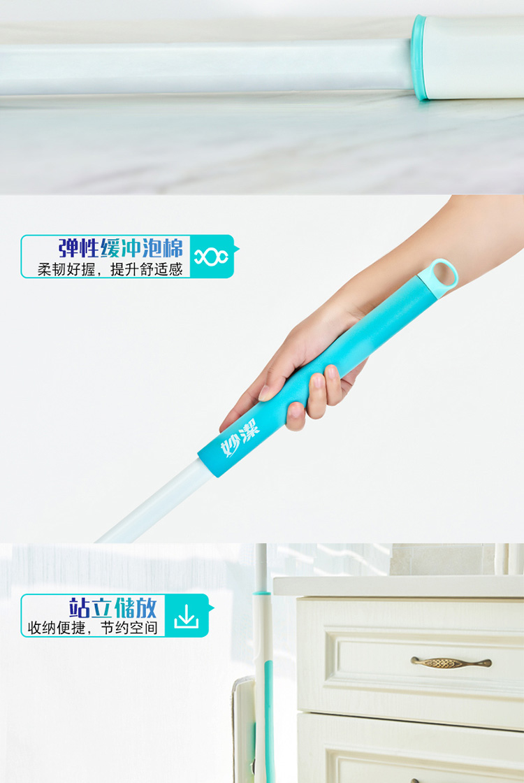 - 商品名称:妙洁免手洗平板拖把 家用办公室木地板懒人自动墩布伸缩杆式拖把清洁工具神器吸推除尘 共2块替换布