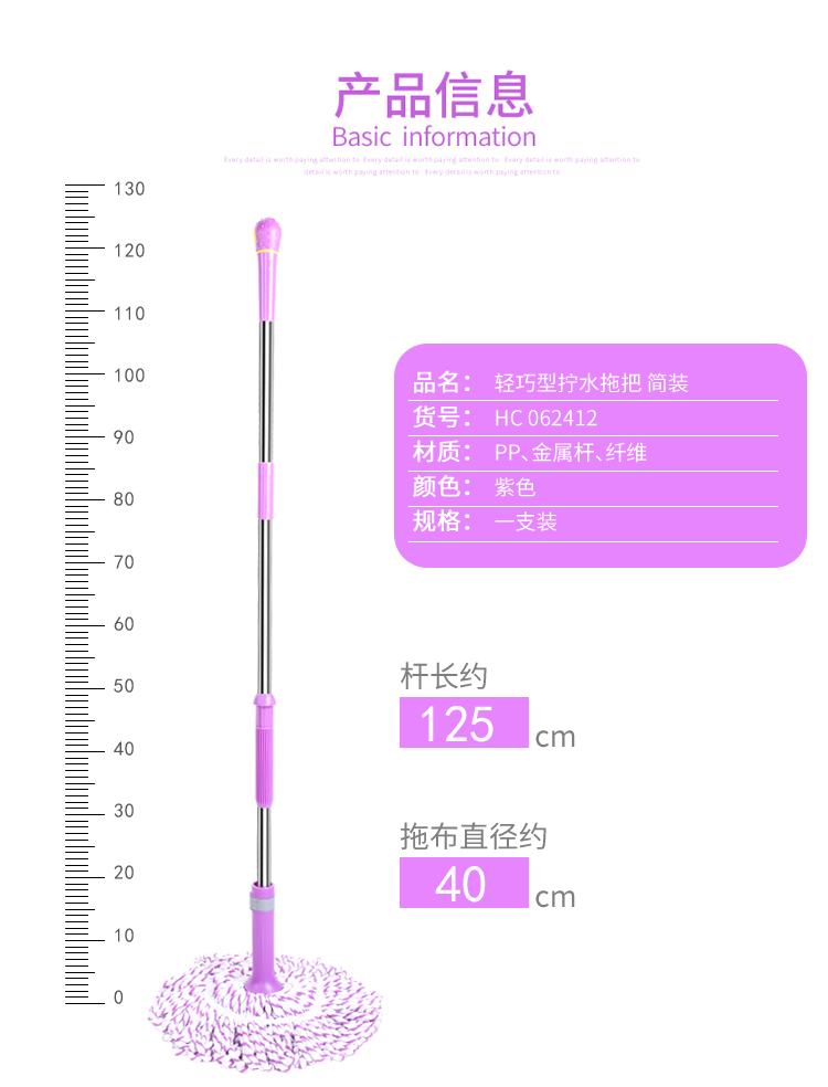 - 商品尺寸:杆长约125cm,拖布直径约40cm