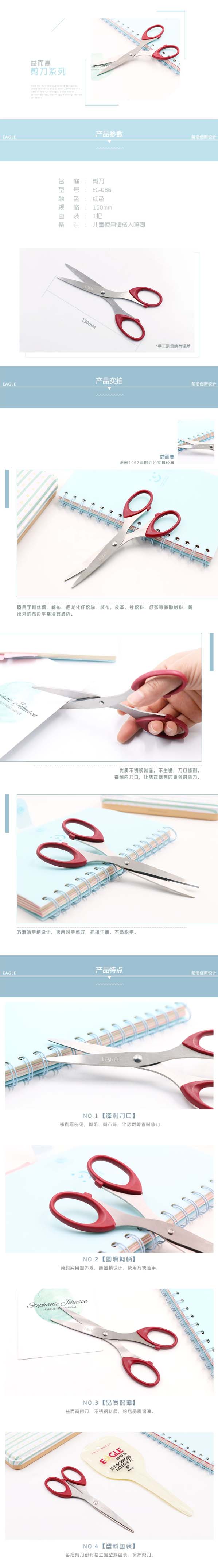 - 商品名称:益而高 EG-086 办公剪刀 160mm 12把/盒