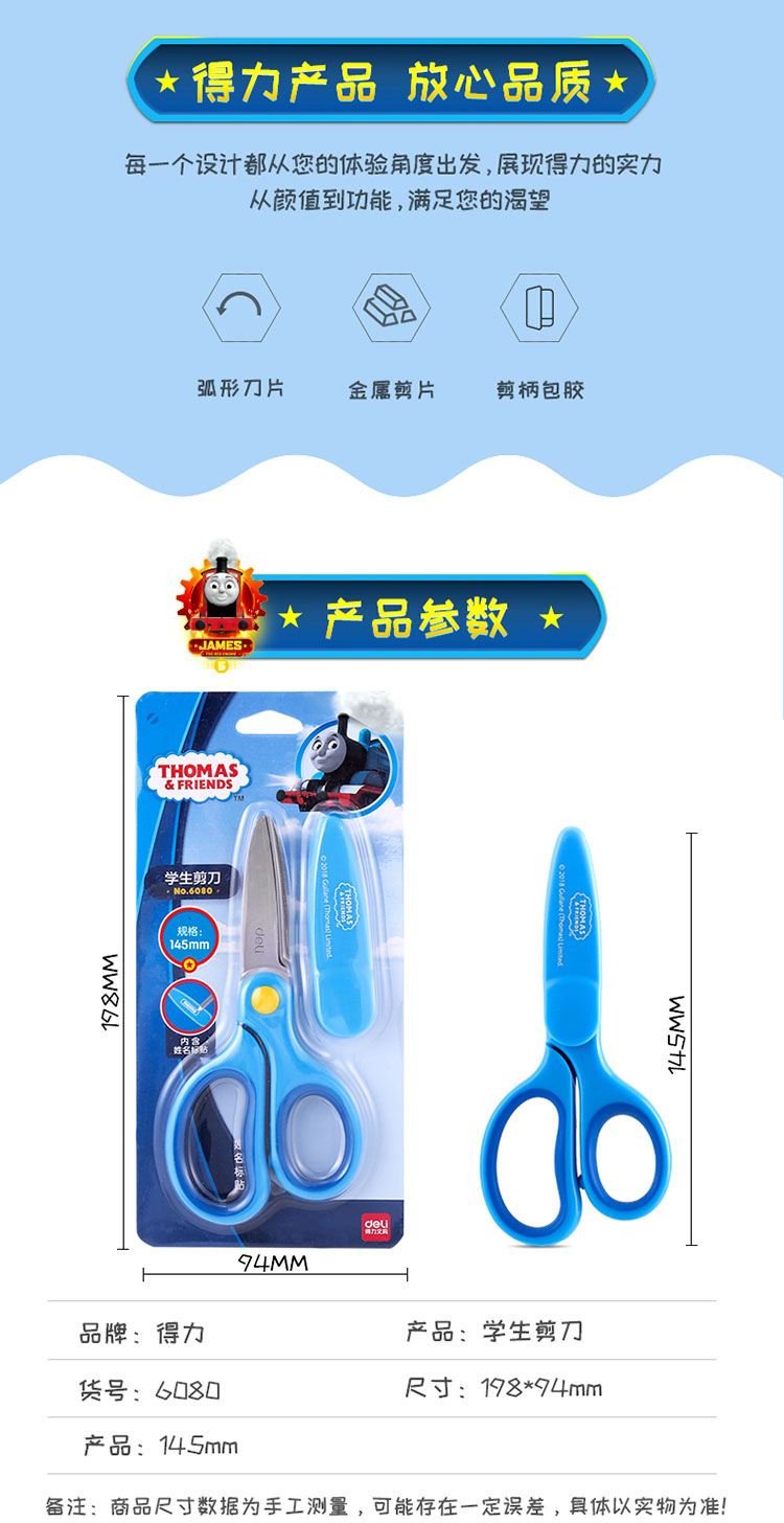 - 商品名称:得力 6080 学生剪刀(蓝色)