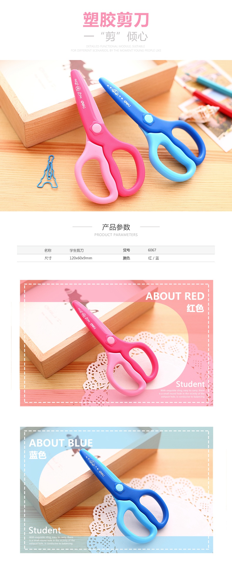 - 商品名称:得力(deli) 学生文具儿童剪刀卡通安全剪刀 6021 蓝色