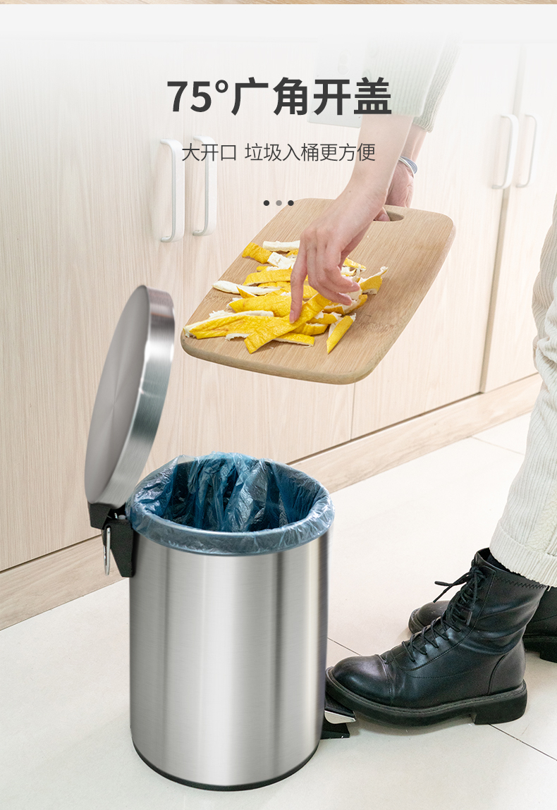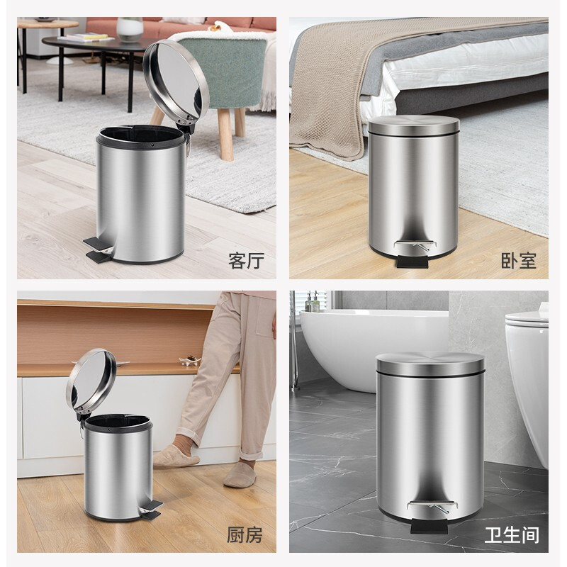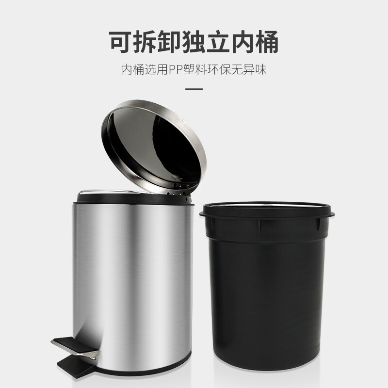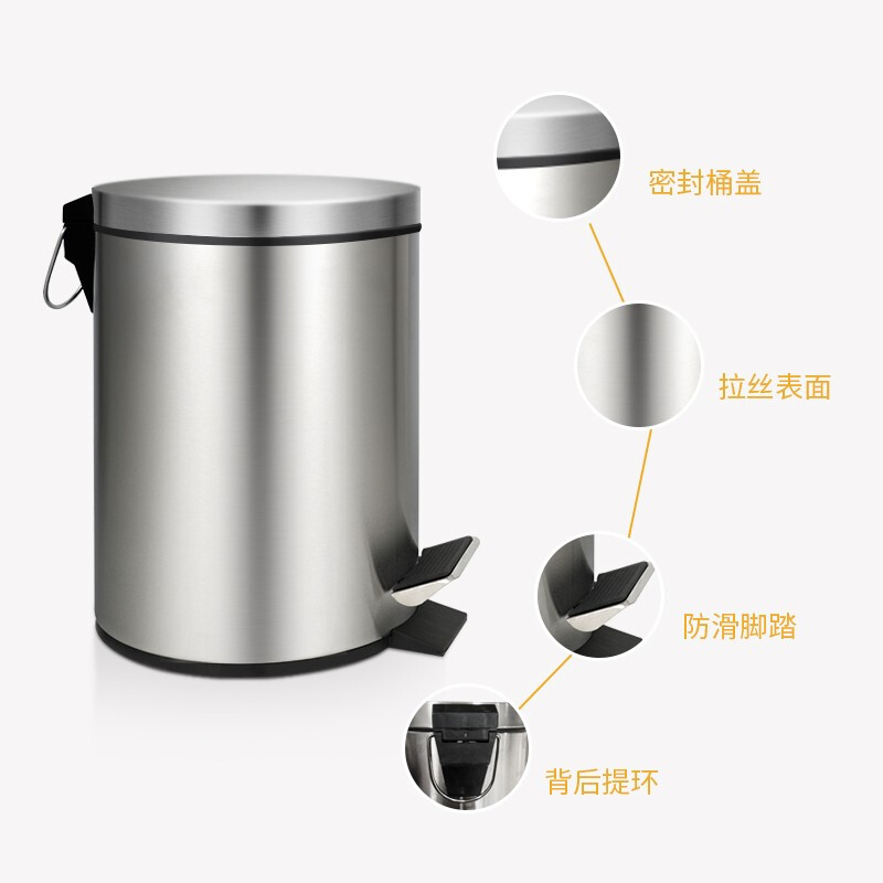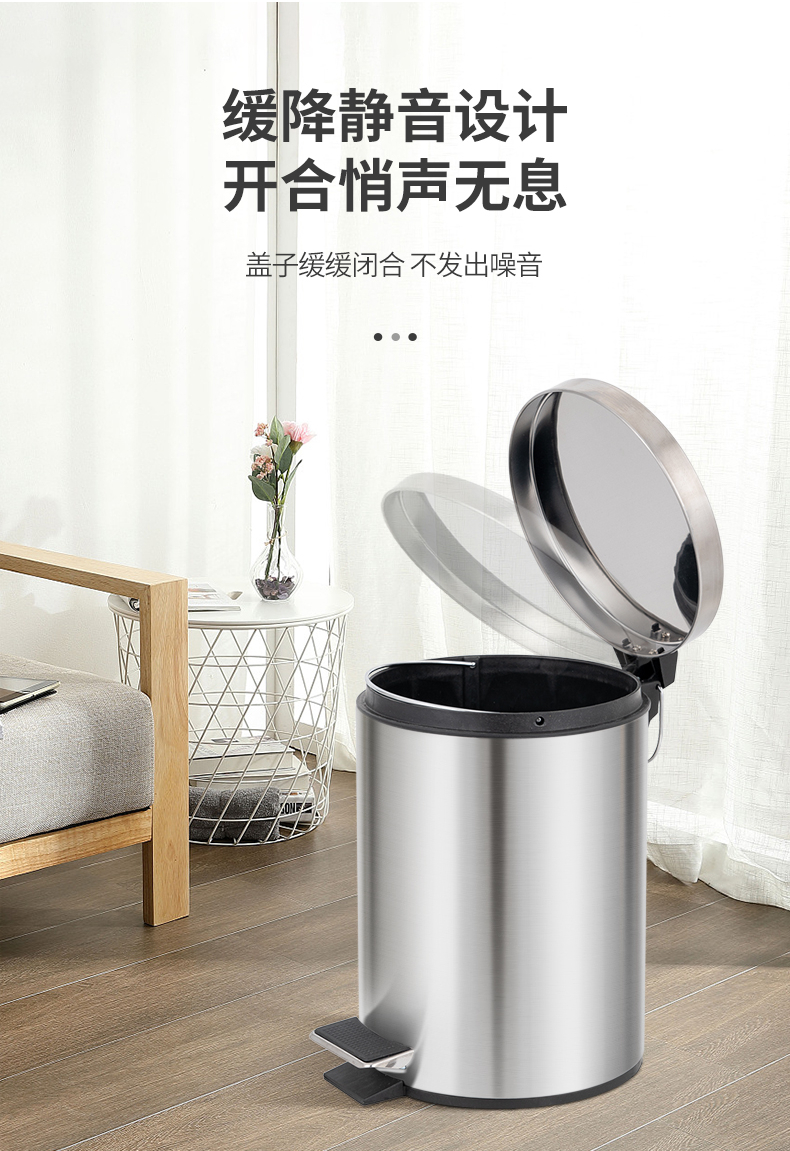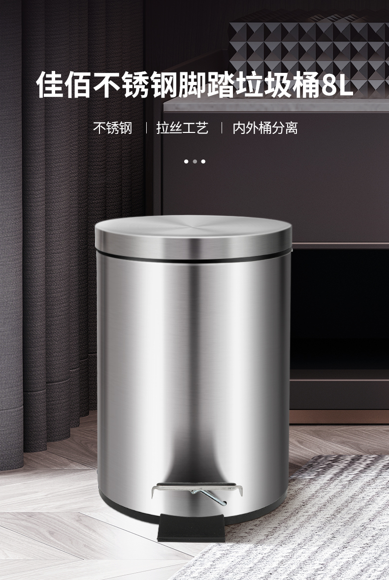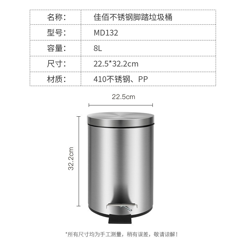 商品名称:佳佰 不锈钢脚踏垃圾桶 家用带盖 厨房客厅厕所浴室卫生间 商用垃圾篓 圆形8L MD132