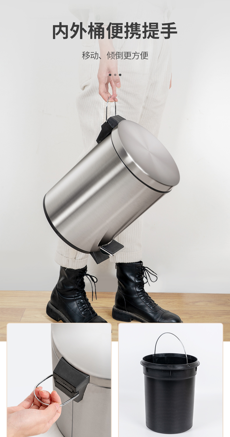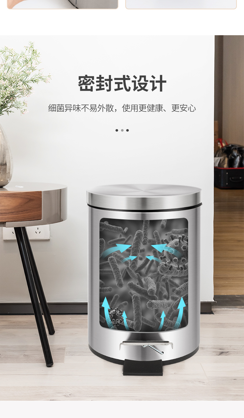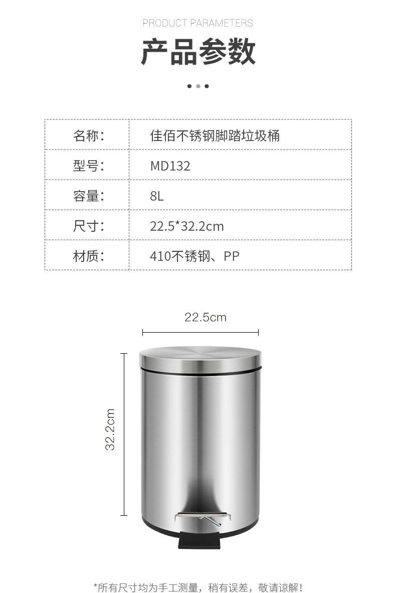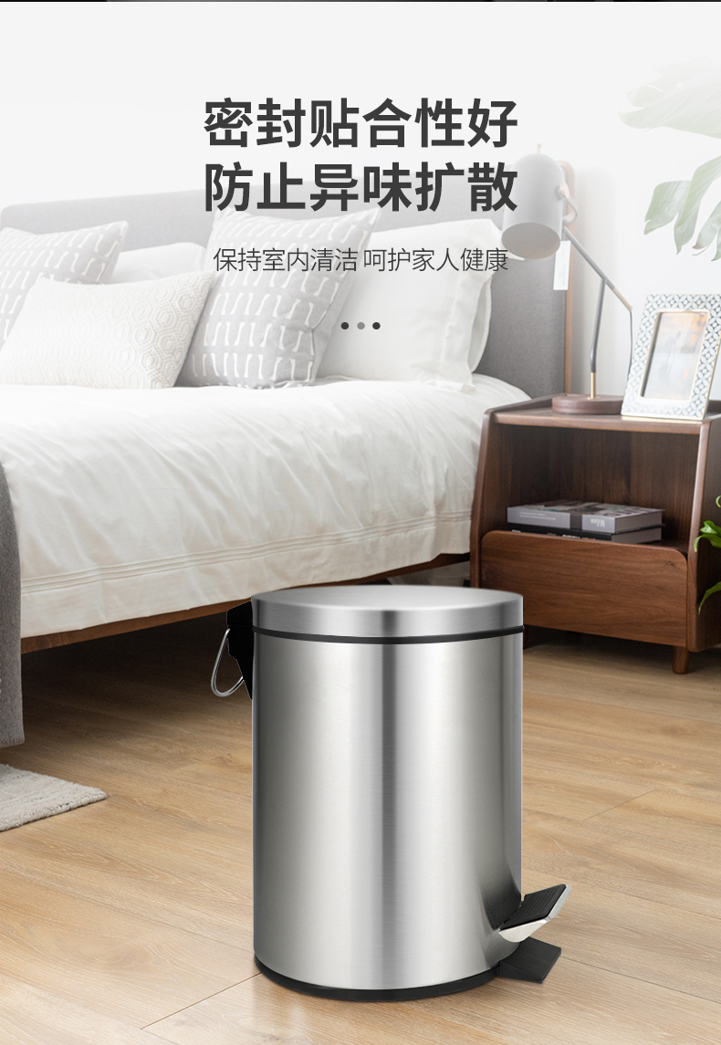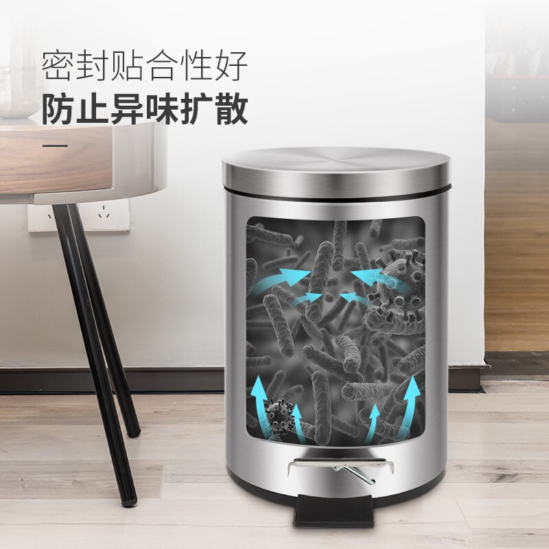 商品名称:佳佰 不锈钢脚踏垃圾桶 家用带盖 厨房客厅厕所浴室卫生间 商用垃圾篓 圆形8L MD132