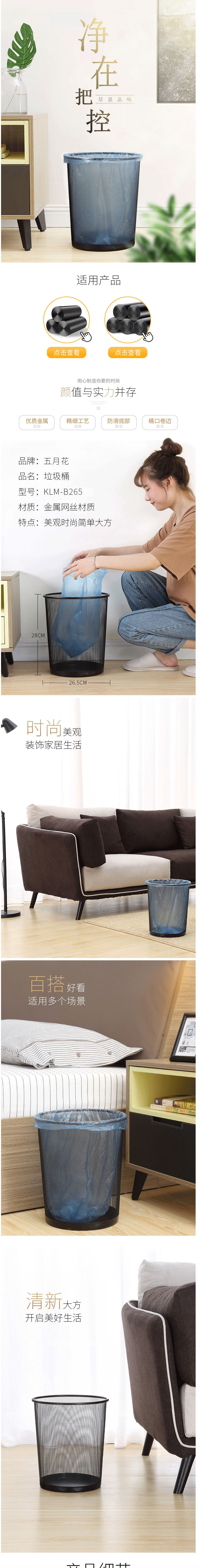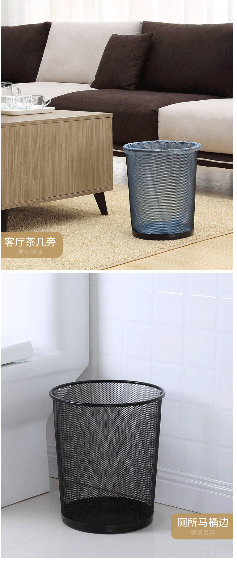 - 商品名称:五月花 分类垃圾桶 12L大号φ265mm稳固金属丝网垃圾篓 办公室居家纸篓 B265黑色