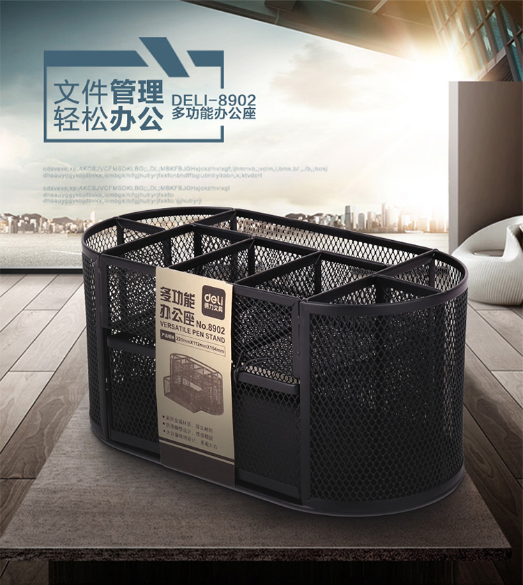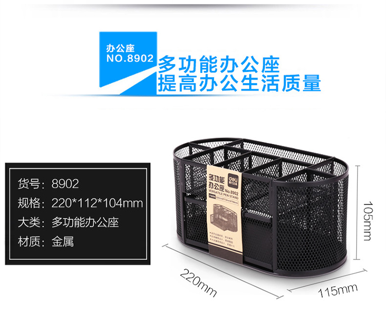 商品名称:得力(deli) 8902 多功能 金属组合笔筒 黑色