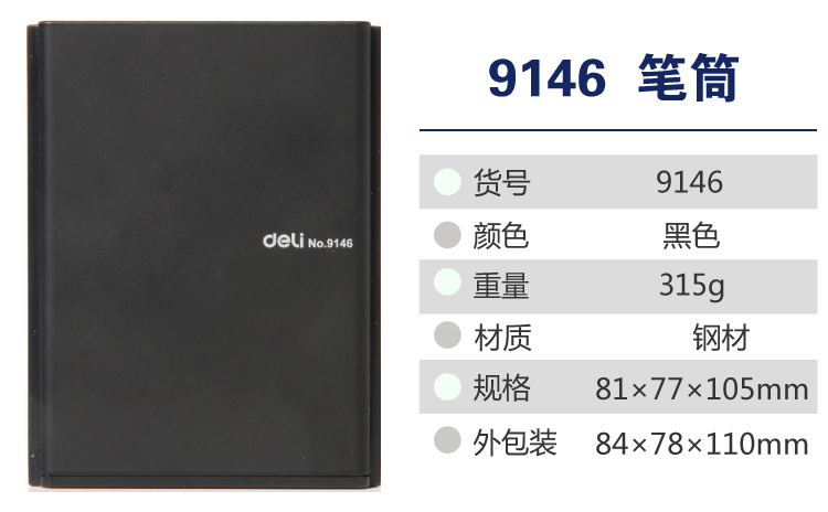- 商品名称:得力(deli) 9146 金属钢制桌面笔筒 黑色