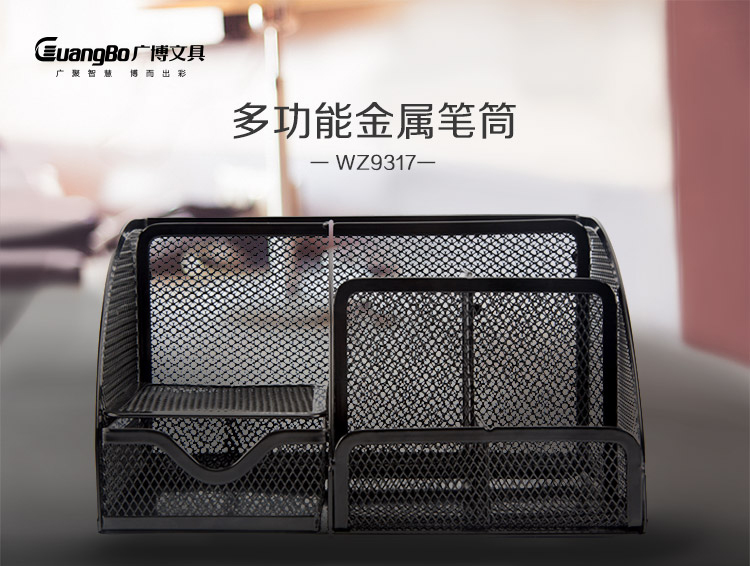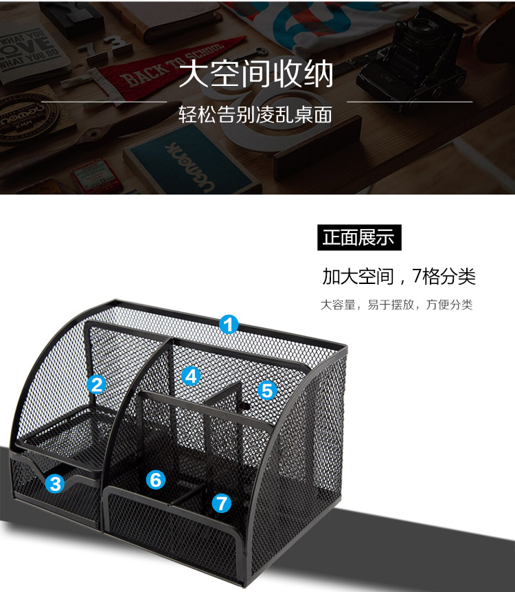 - 商品名称:广博 WZ9317 7格金属多功能笔筒 黑色