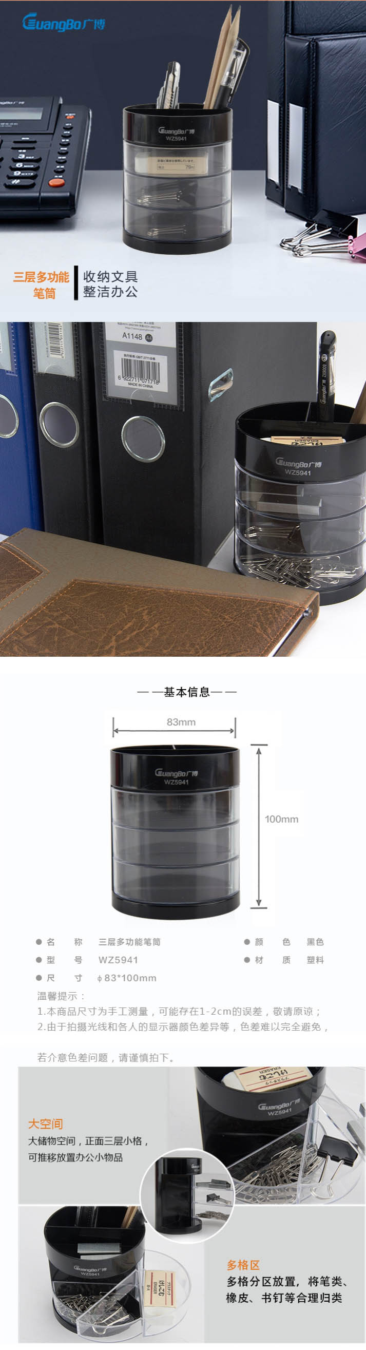 - 商品名称:广博 (GuangBo)WZ5941 三层多功能办公笔筒 带桌面收纳盒