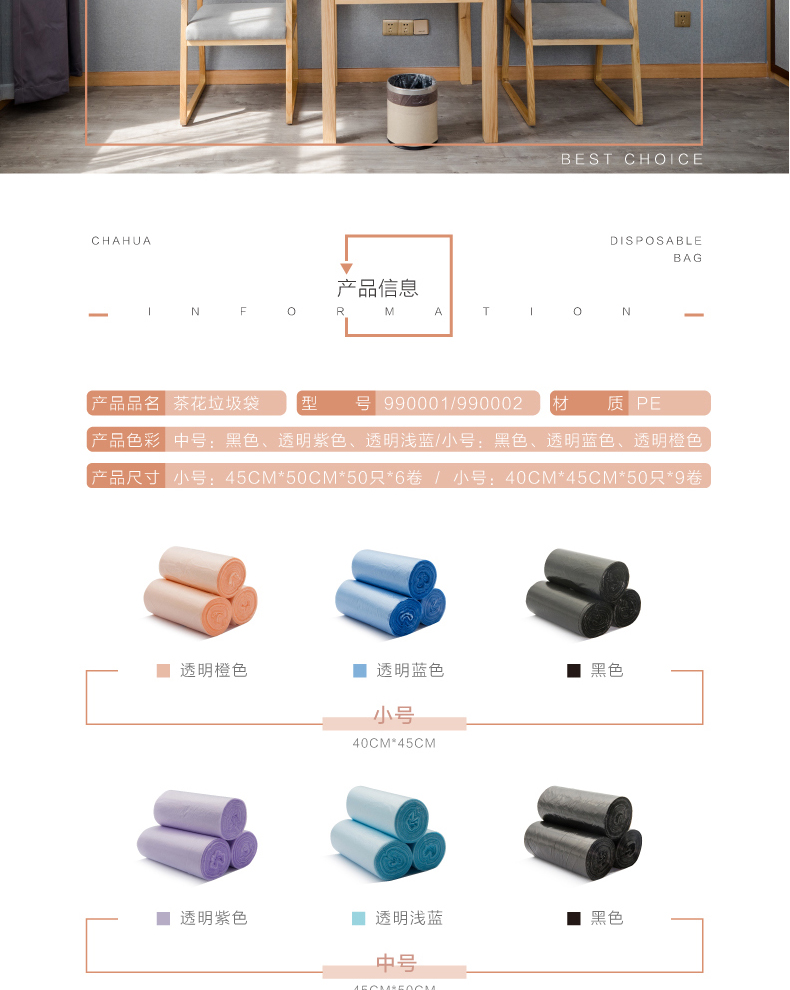- 商品名称:茶花垃圾袋加厚450只小号40*45cm分类家用厨余厨房清洁袋垃圾桶方便收纳袋 990002