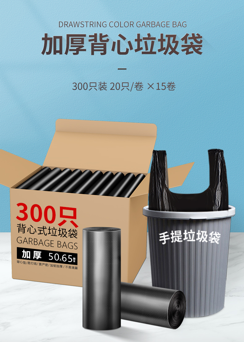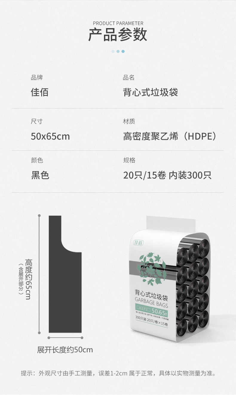 - 商品名称:佳佰背心手提式垃圾袋 300只 中号加厚50*65cm*10卷 黑色 大分类垃圾袋 家用办公分类垃圾桶袋