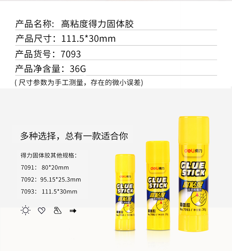 - 商品名称:得力 (deli) 7093 PVP固体粘性胶棒 36g 12支装
