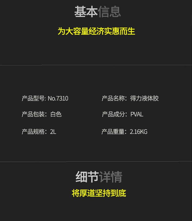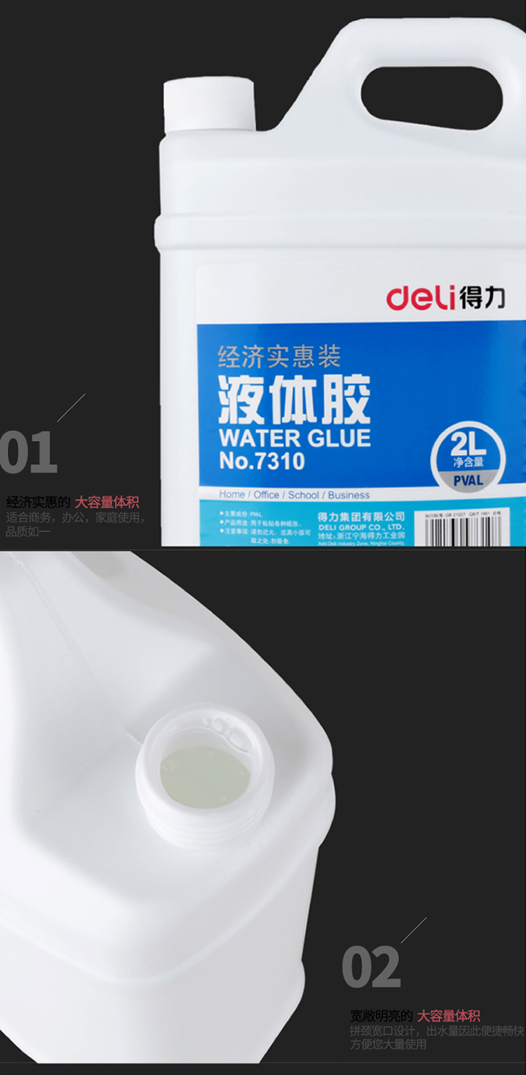 - 商品名称:得力(deli)7310 液体胶水 2L