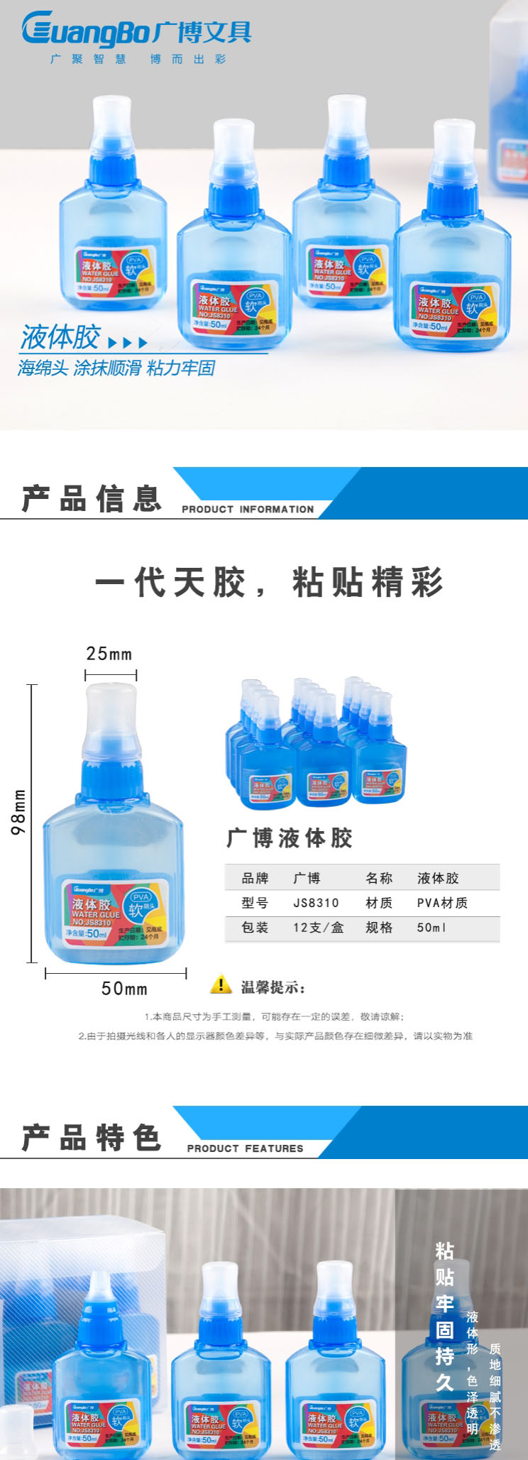 - 商品名称:广博 (GuangBo) JS8310 50ml带刷头液体胶水