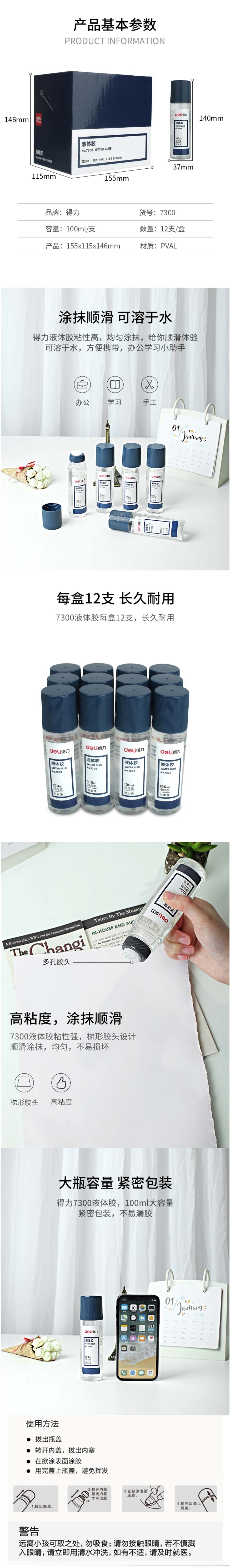 - 商品名称:得力 7300 液体胶(透明)