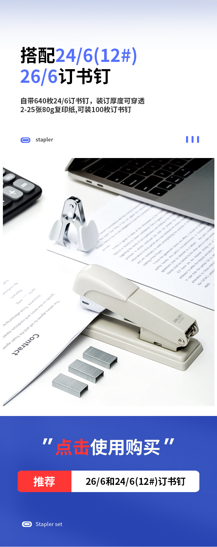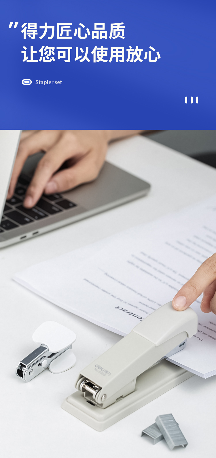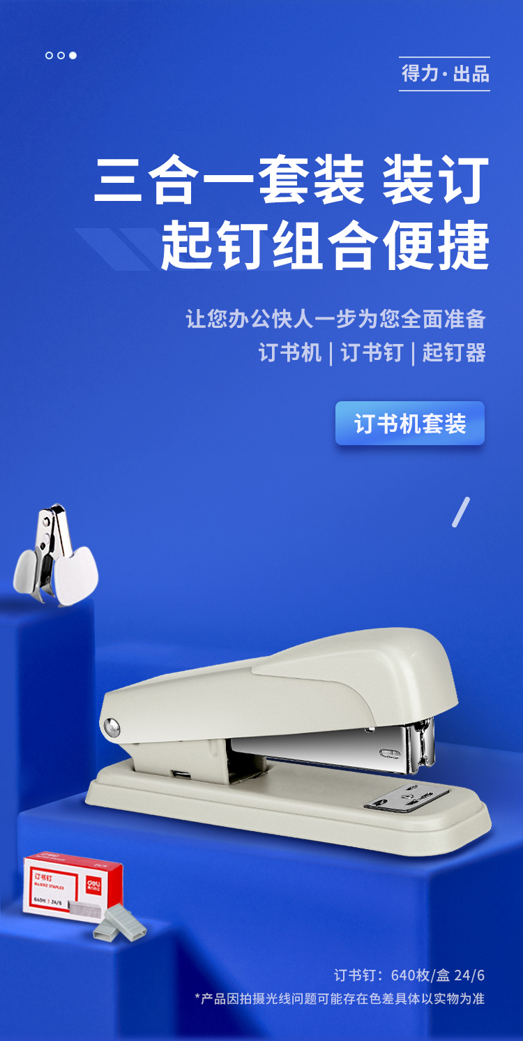 - 商品名称:得力(deli)订书机三件组合套装(订书机+订书钉+起钉器) 白色0359