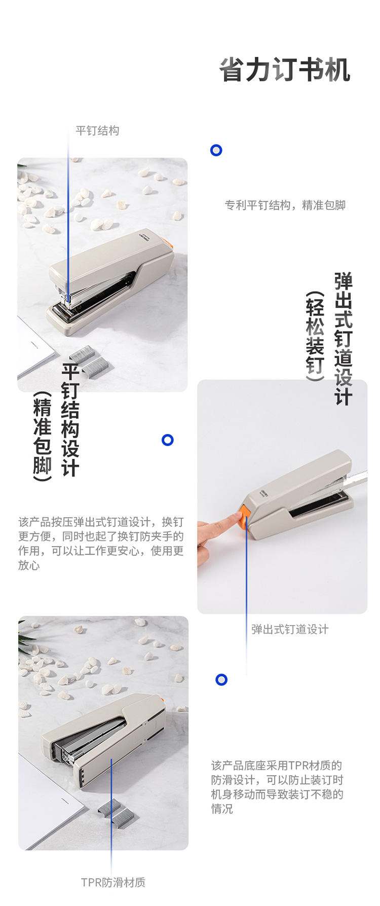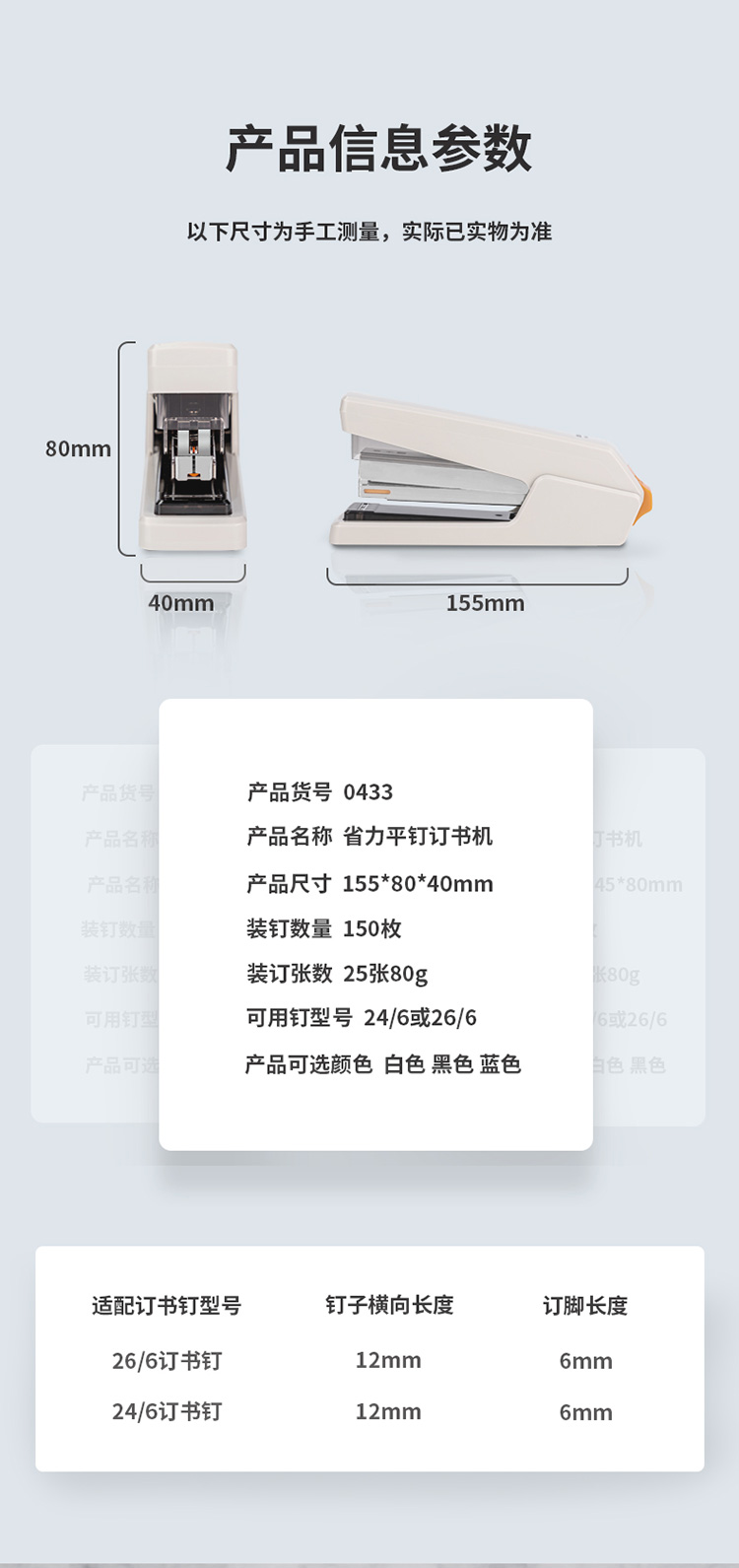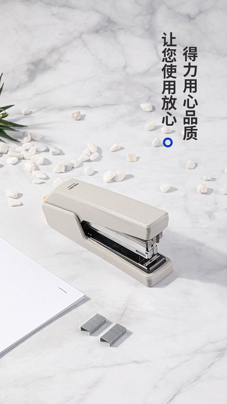 - 商品名称:得力(deli)平钉省力型订书机专利平钉结构平钉包角 灰色0433