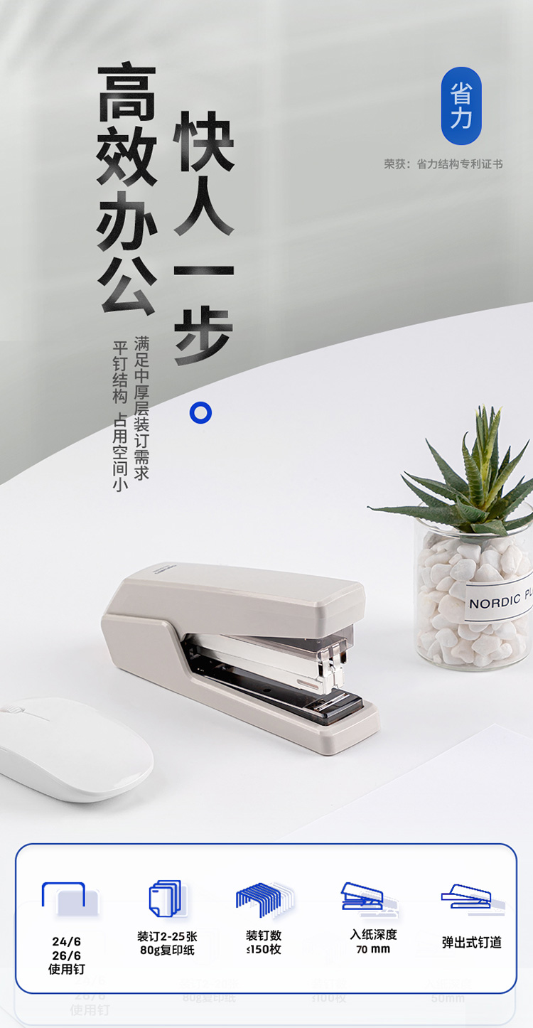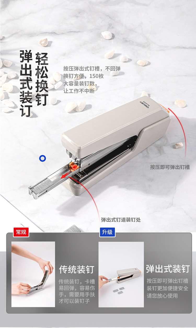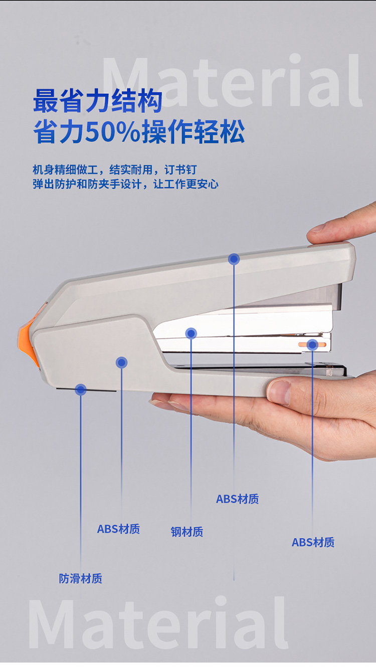 - 商品名称:得力(deli)平钉省力型订书机专利平钉结构平钉包角 灰色0433