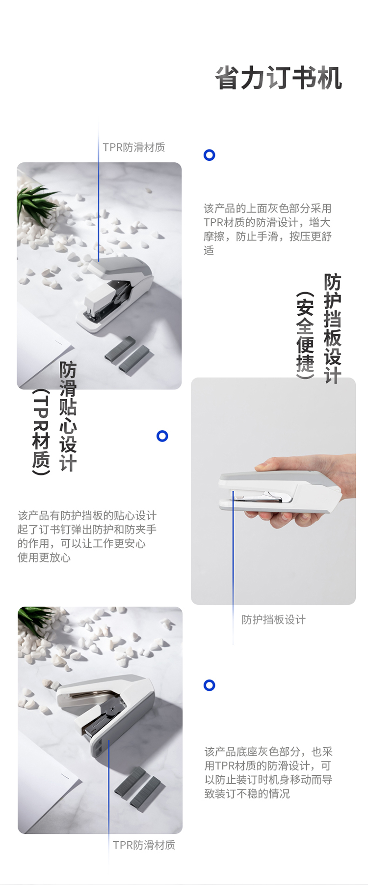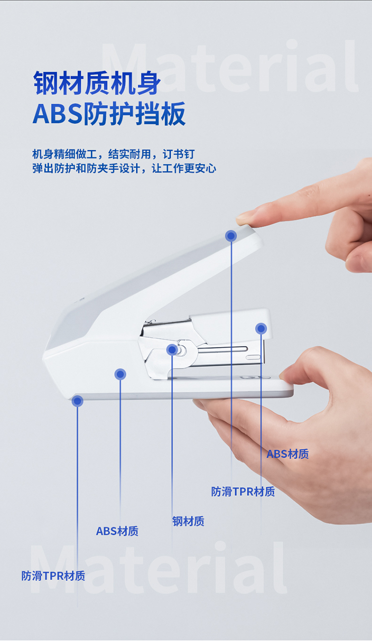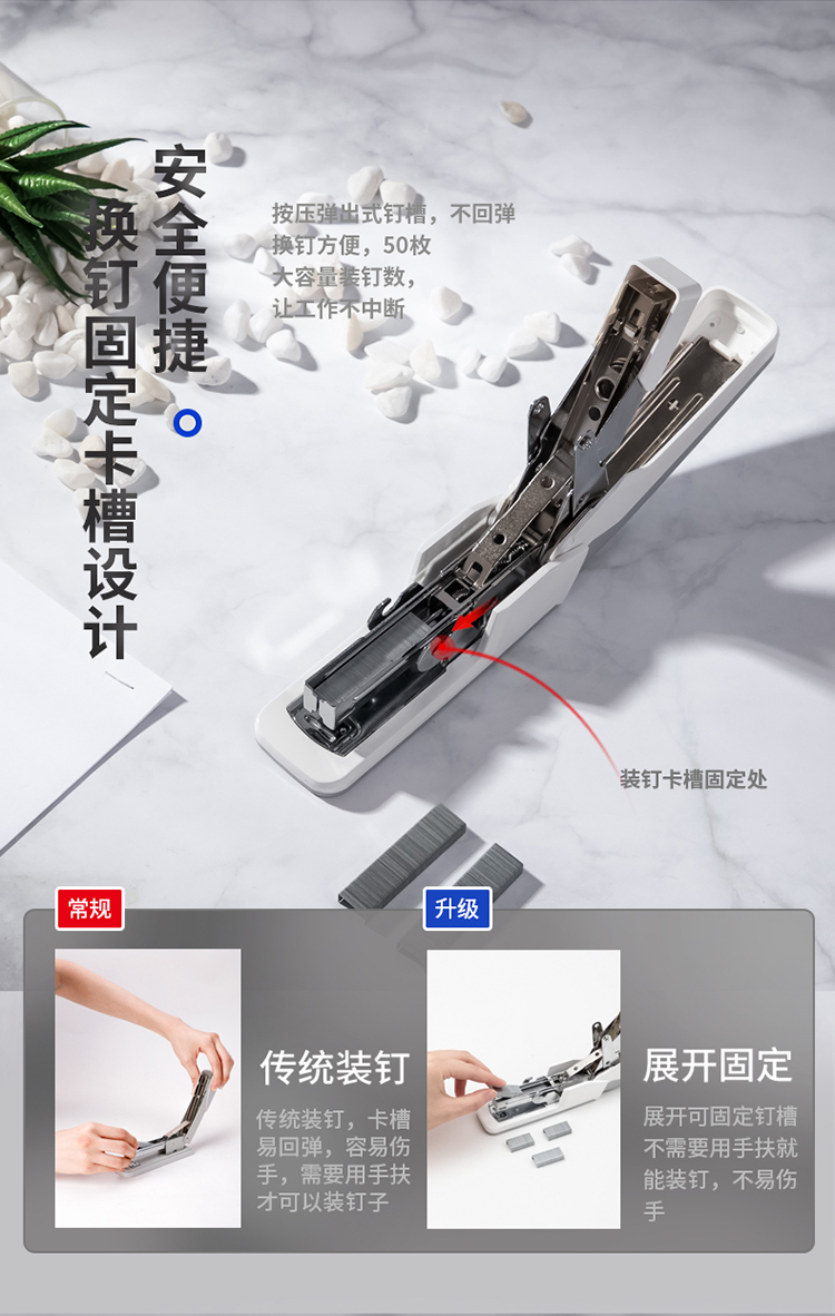 - 商品名称:得力(deli)省力结构订书机/装订器 一指按压 适配12#钉 白色0477