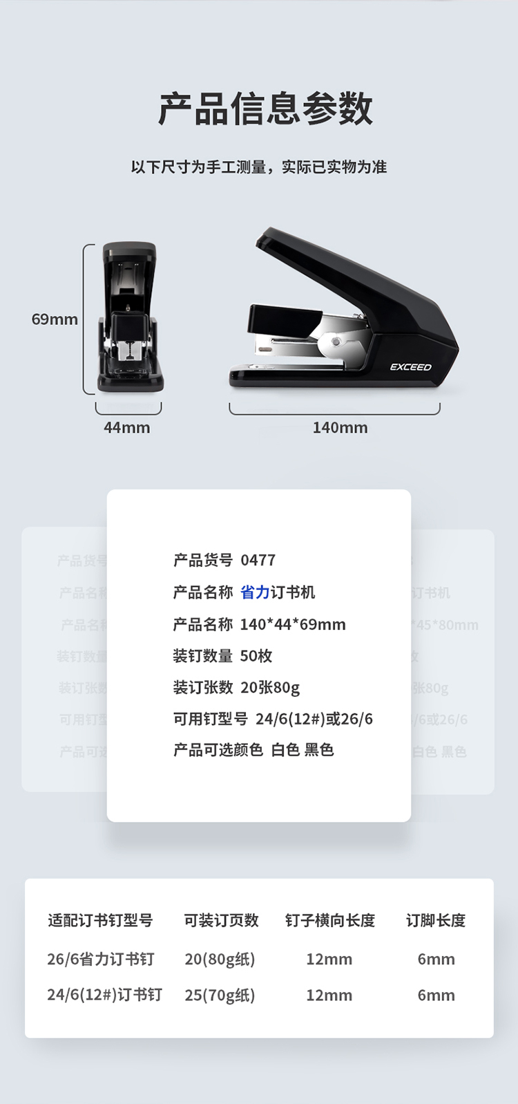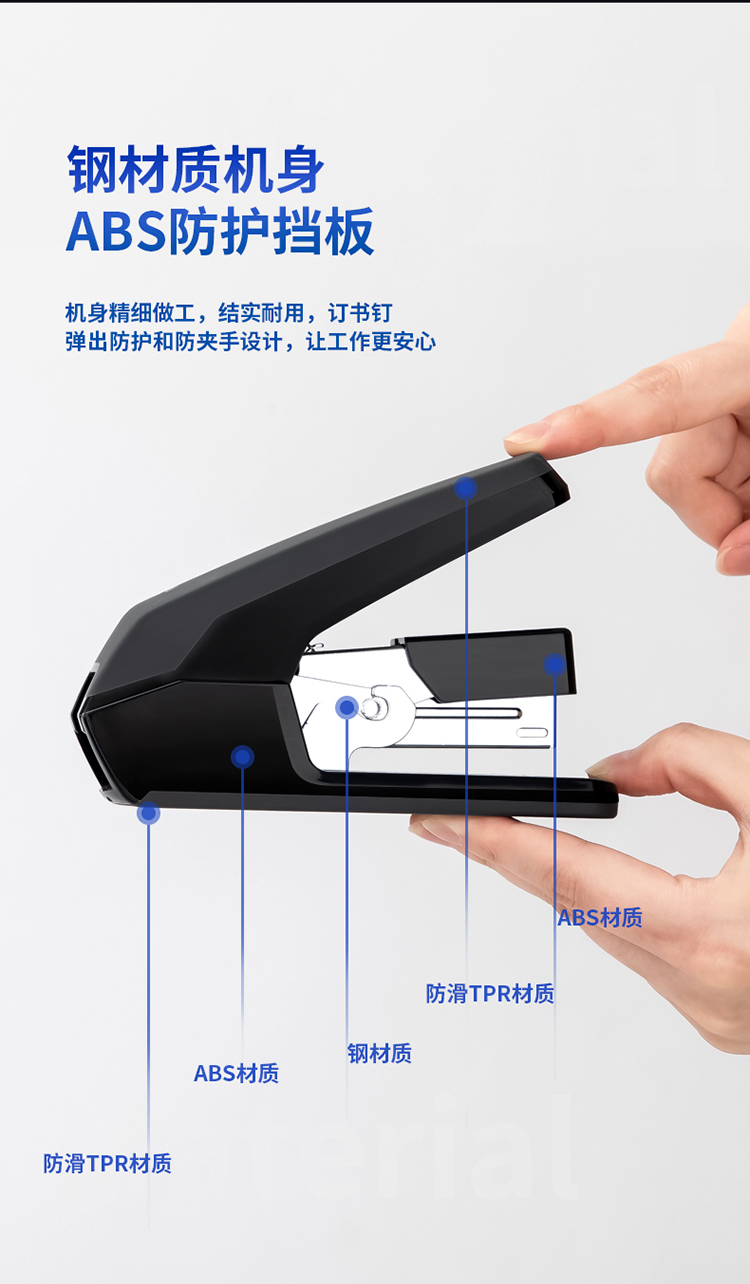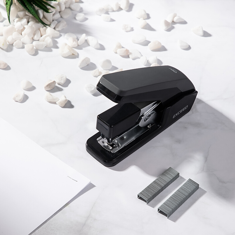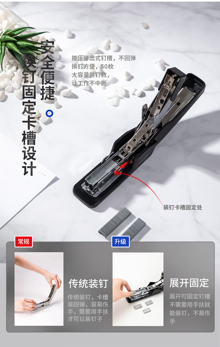 - 商品名称:得力(deli)省力结构订书机/装订器 一指按压 适配12#钉 黑色0477