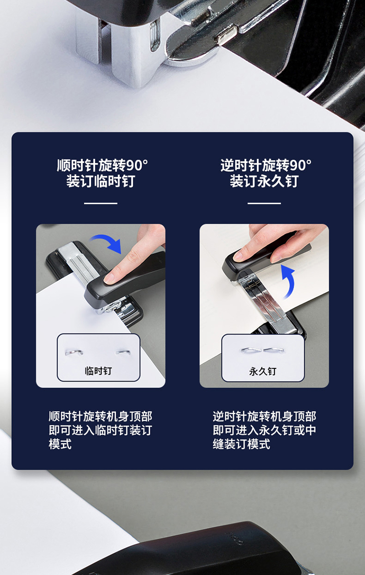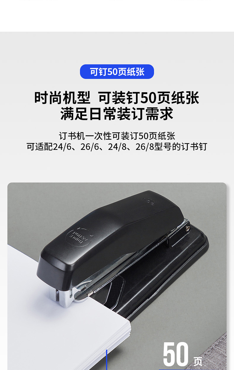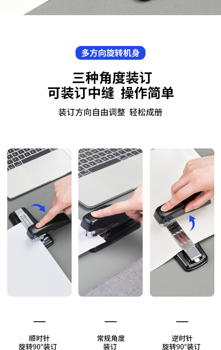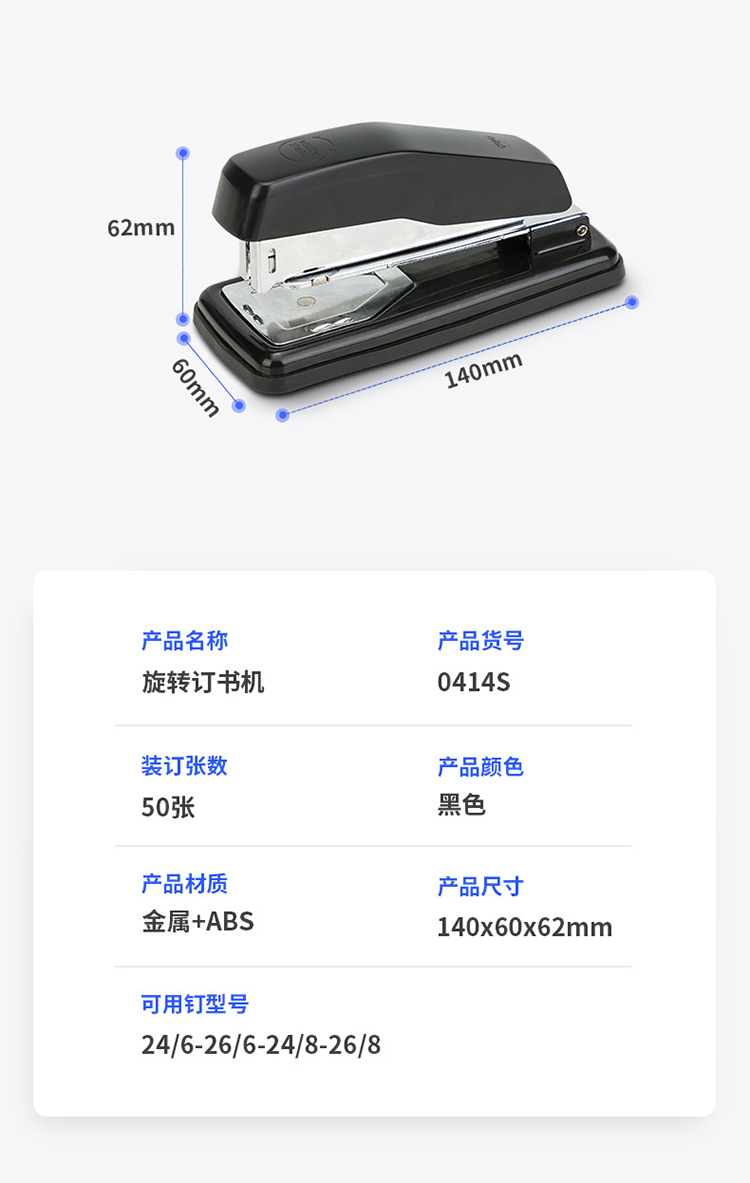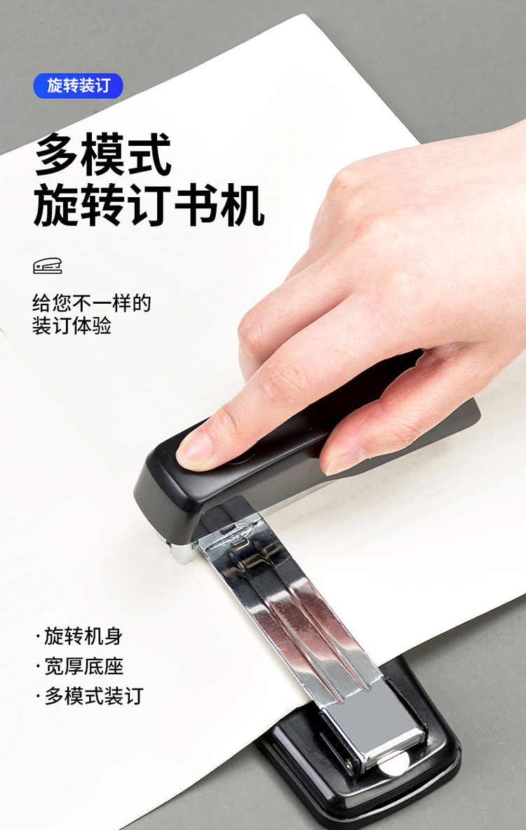- 商品名称:得力(deli)12#50页旋转式订书机 厚层订书器 中缝装订 临时装订可拆 办公用品 黑色0414S