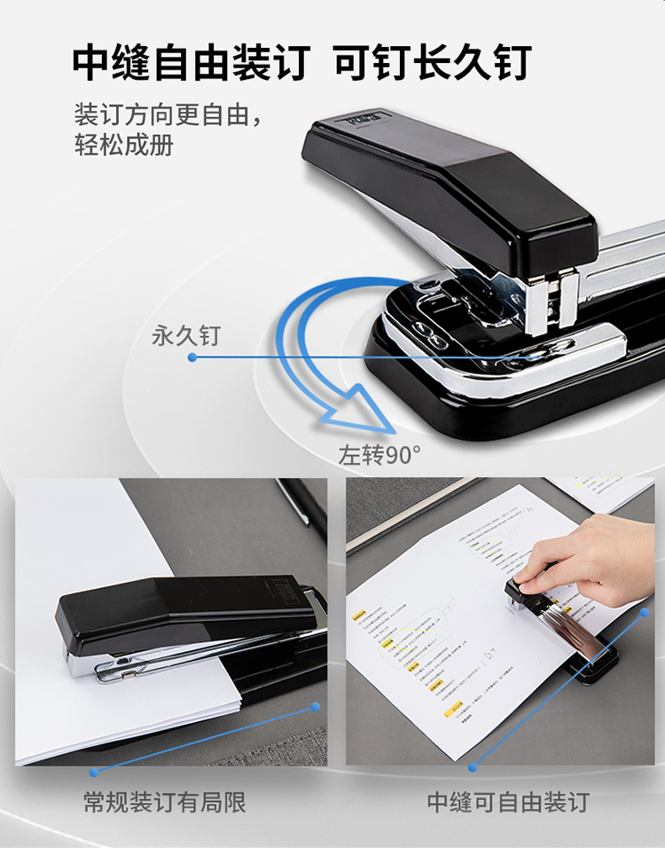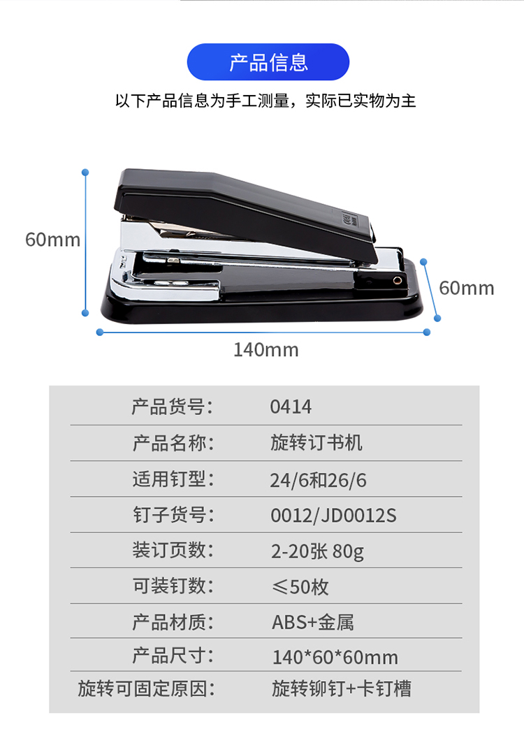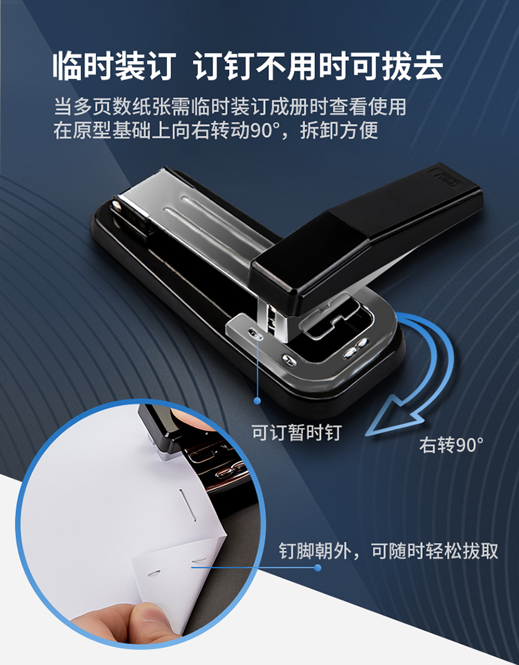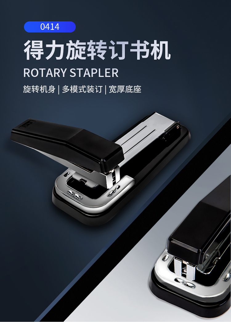 - 商品名称:得力(deli)12#旋转式订书机/订书器 中缝装订 临时装订可拆 办公用品 黑色0414