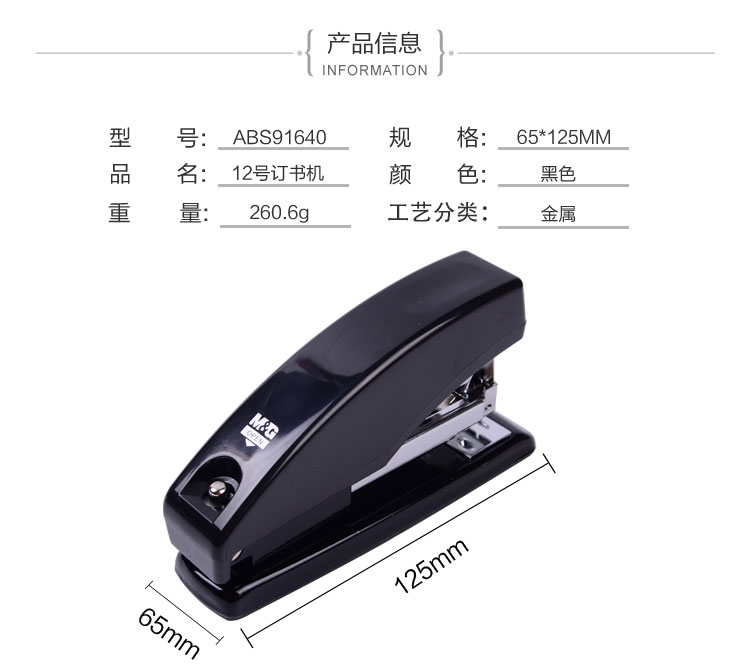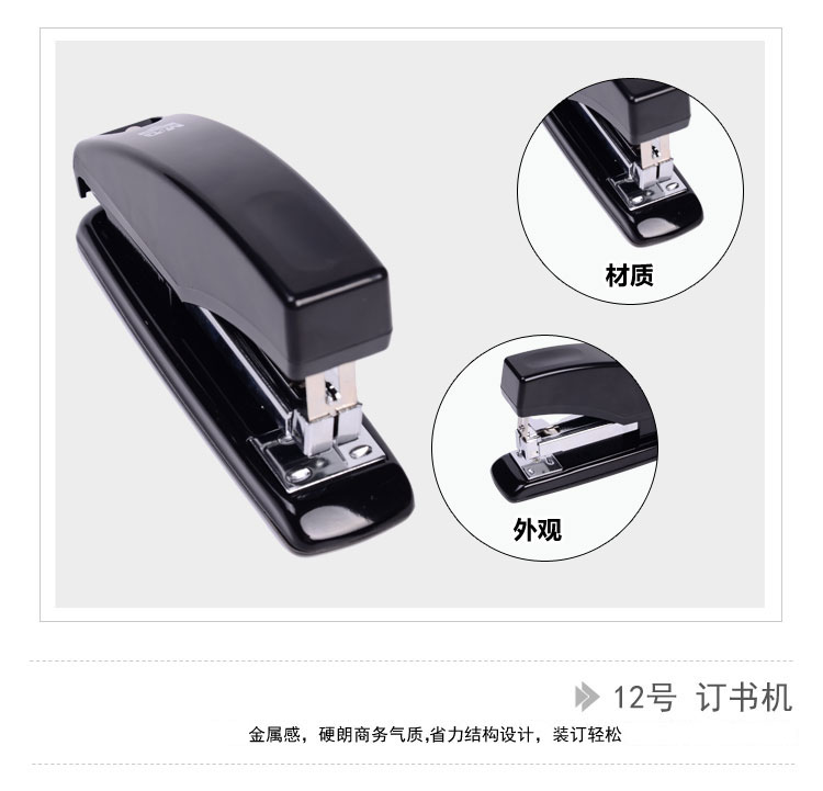 - 商品名称:晨光(M&G)文具12#黑色订书机 商务型省力订书器 办公用品 单个装ABS91640