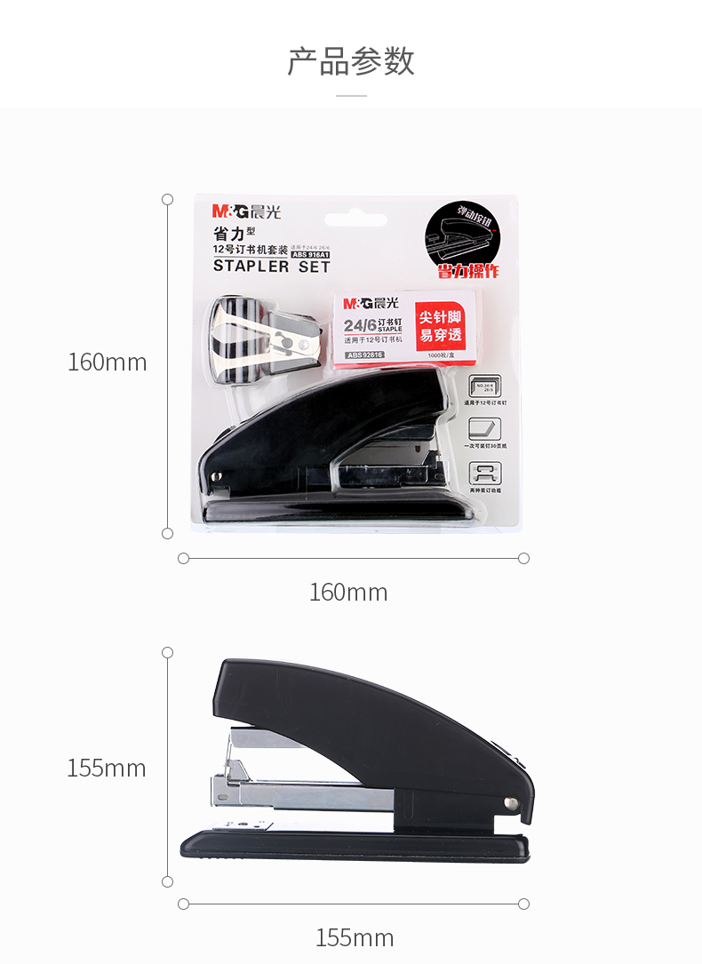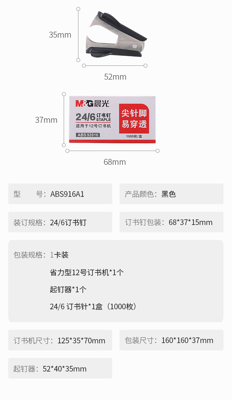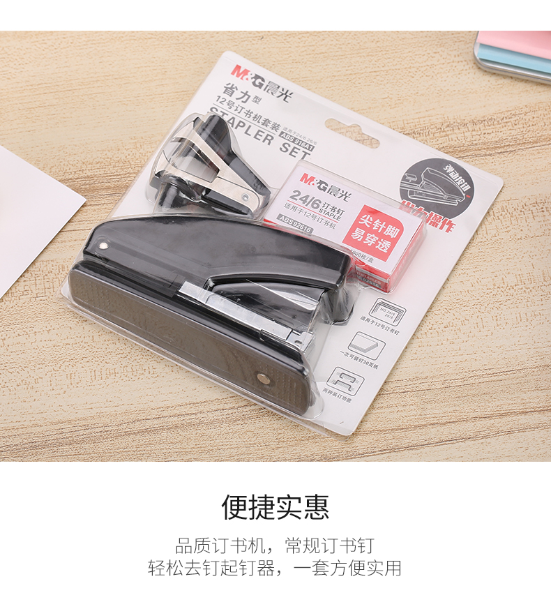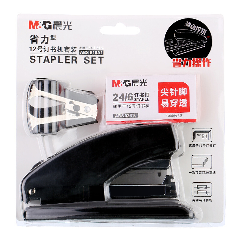 - 商品名称:晨光(M&G)ABS916A1 文具12#黑色省力型订书机套装(订书器+订书钉+起钉器)金属订书机 办公用品