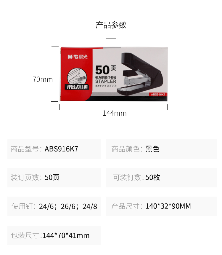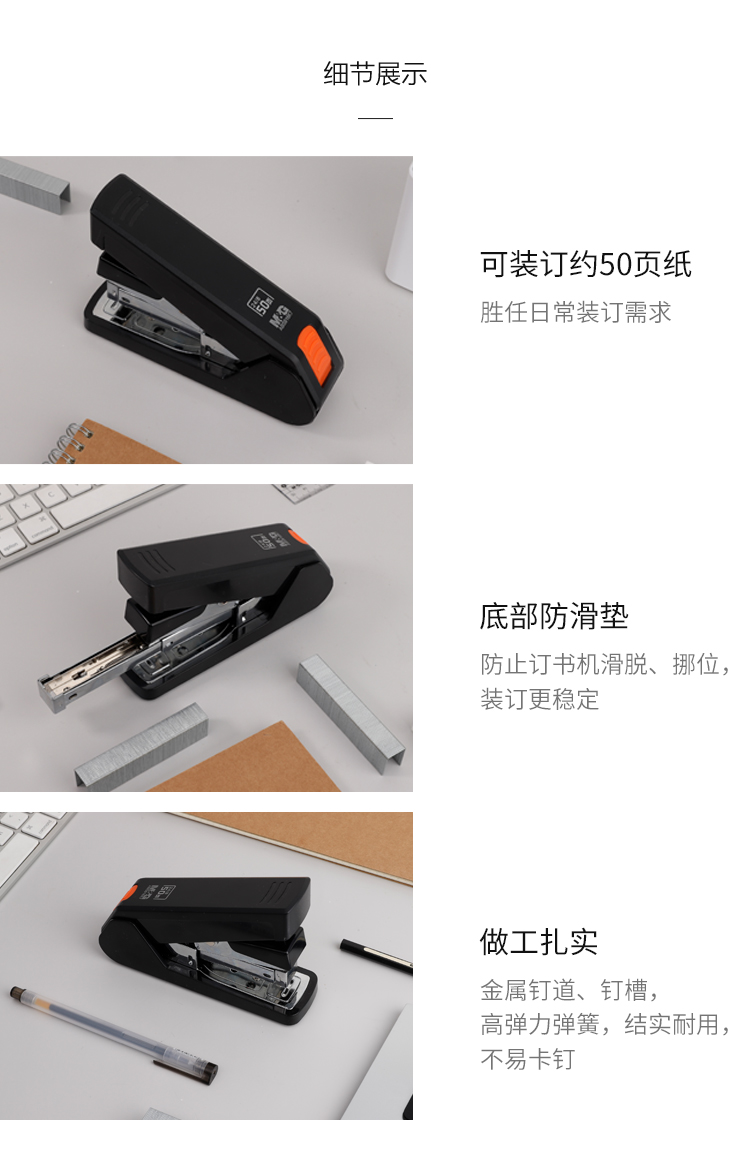 商品名称:晨光(M&G)文具12#50页黑色厚层订书机 商务省力订书器 办公用品 单个装ABS916K7