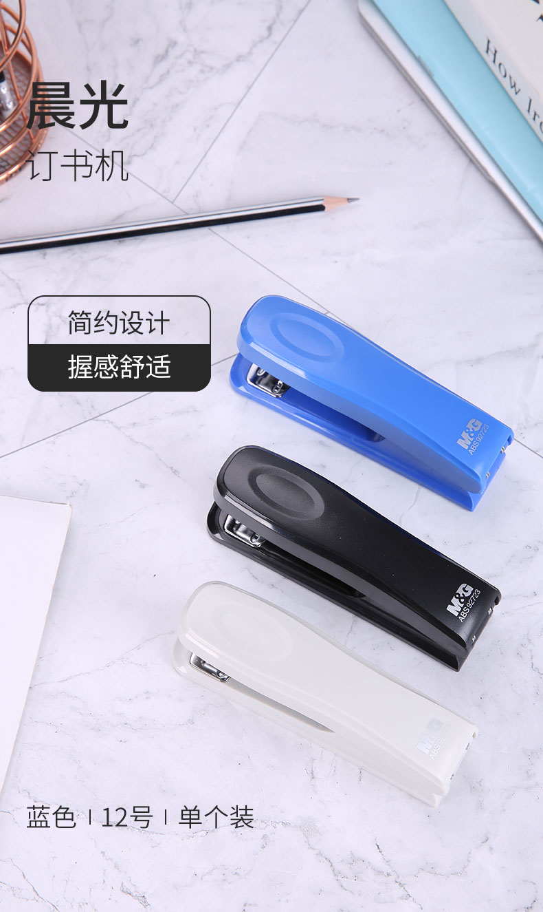 - 商品名称:晨光(M&G)文具12#蓝色订书机 可旋转针板订书器 办公用品 单个装ABS92723