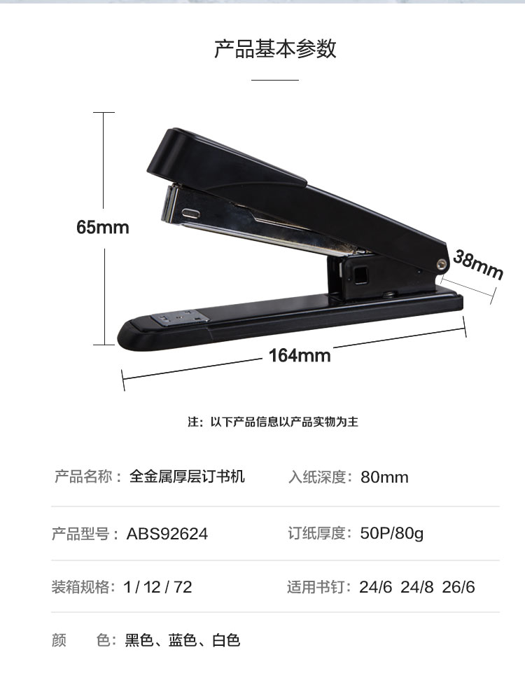 - 商品名称:晨光(M&G)文具12#全金属厚层订书机 多功能订书器 办公用品 单个装颜色随机ABS92624