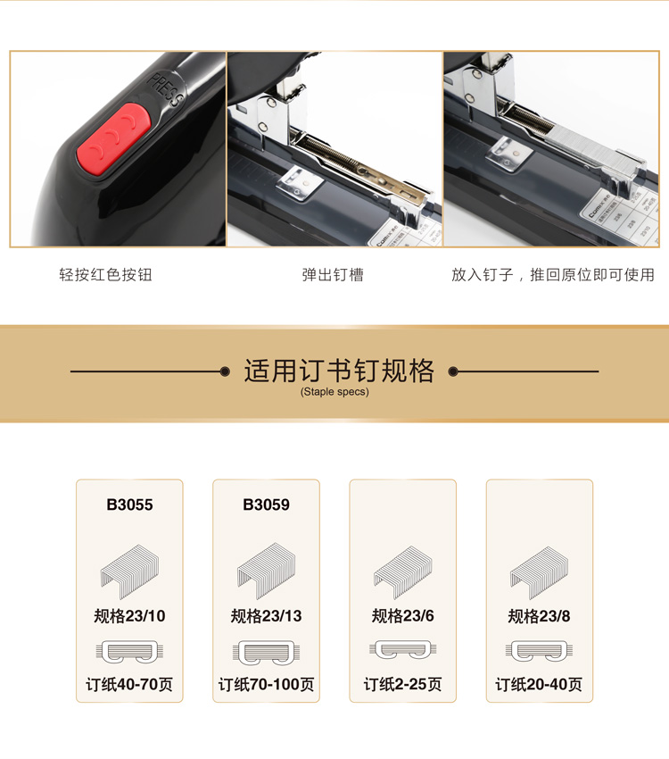 - 商品名称:齐心(Comix) 可订100页(23/10~23/13)重型订书机/钉书器B3025 黑