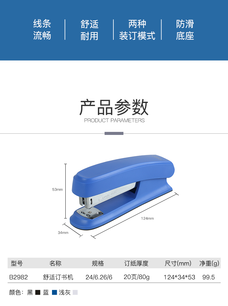 - 商品名称:齐心(COMIX) B2982 舒适防滑订书机 12# 12个装颜色随机