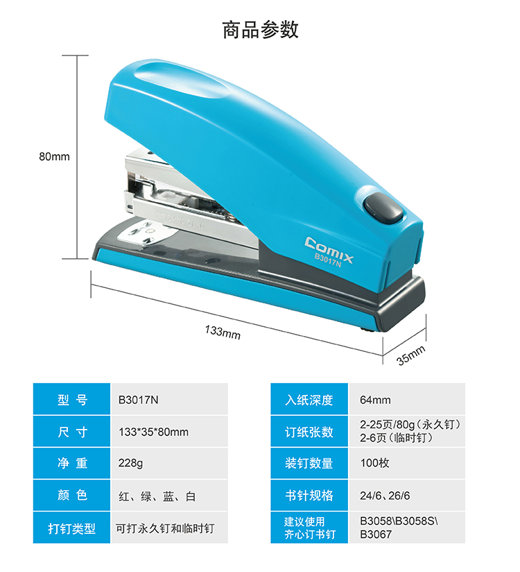 - 商品名称:齐心(COMIX) B3017N省力订书机 订书器红色 6个/箱