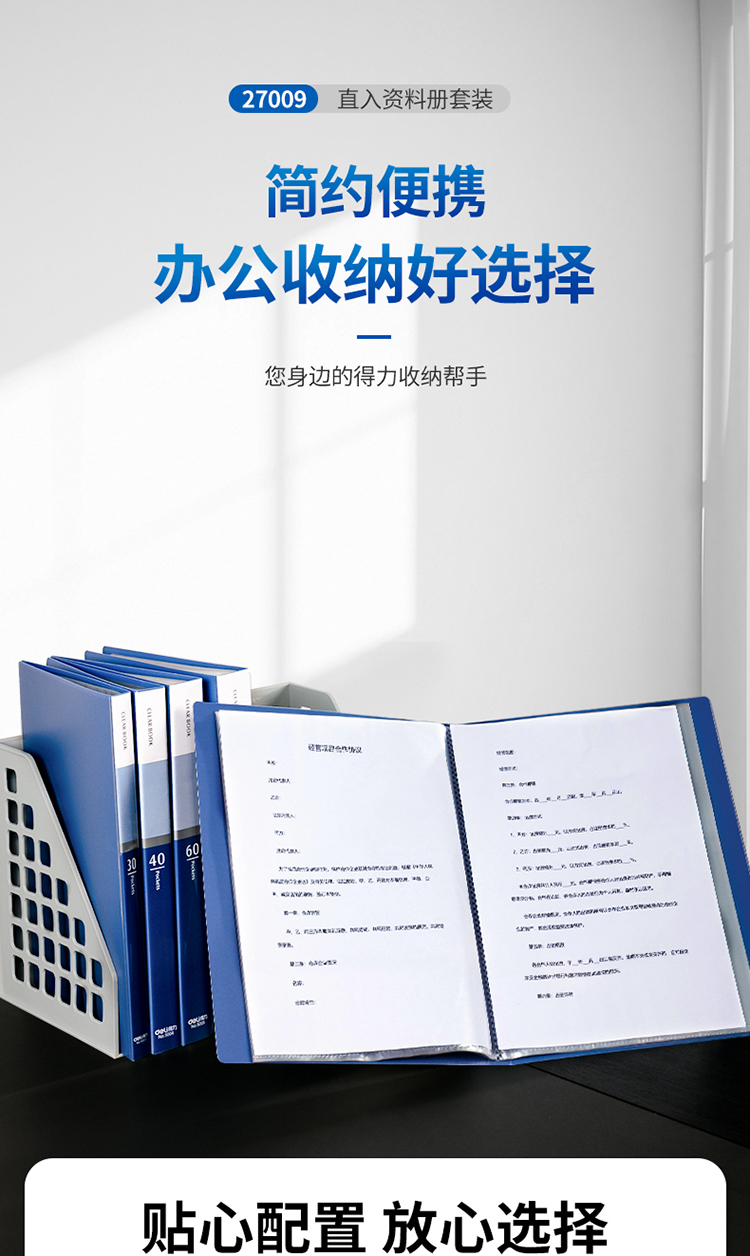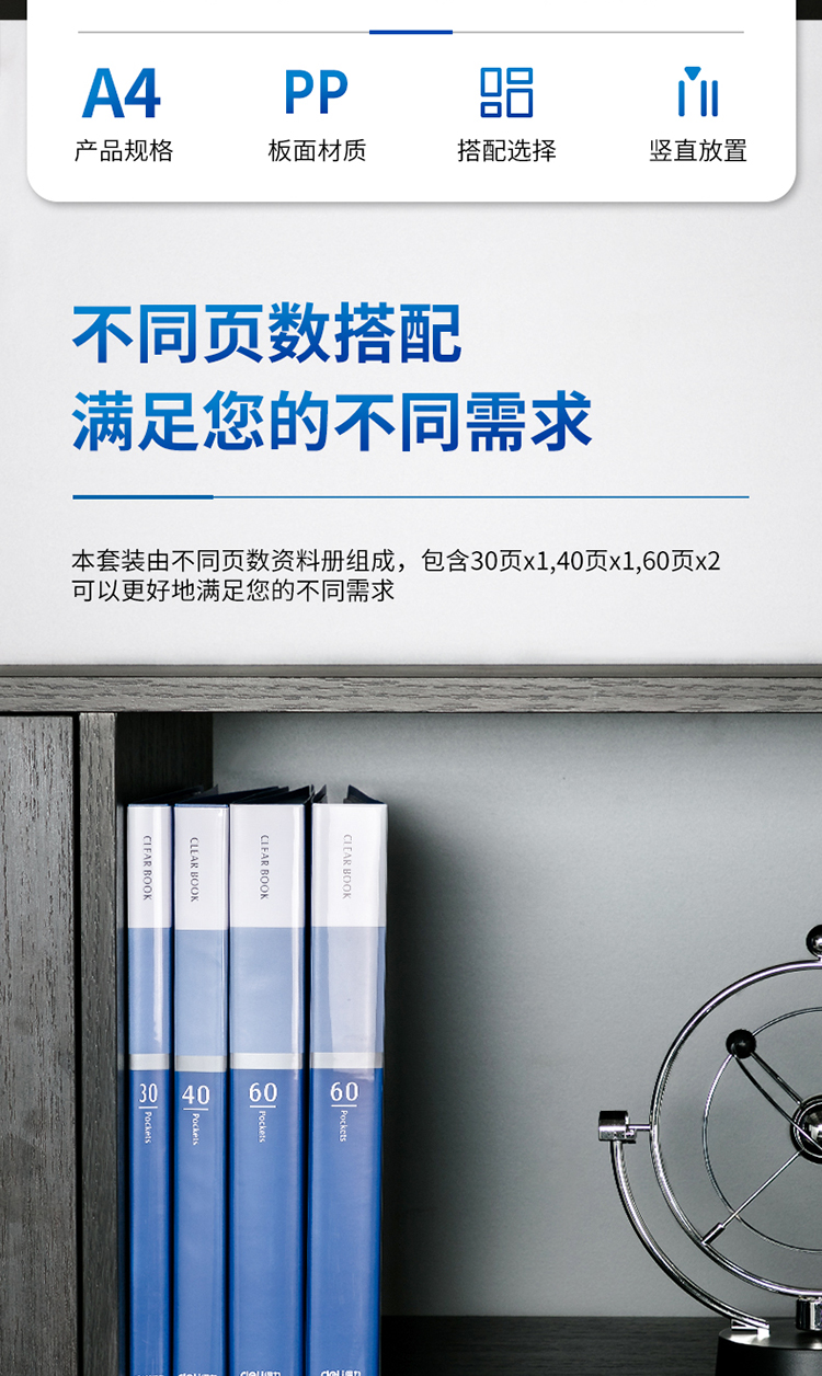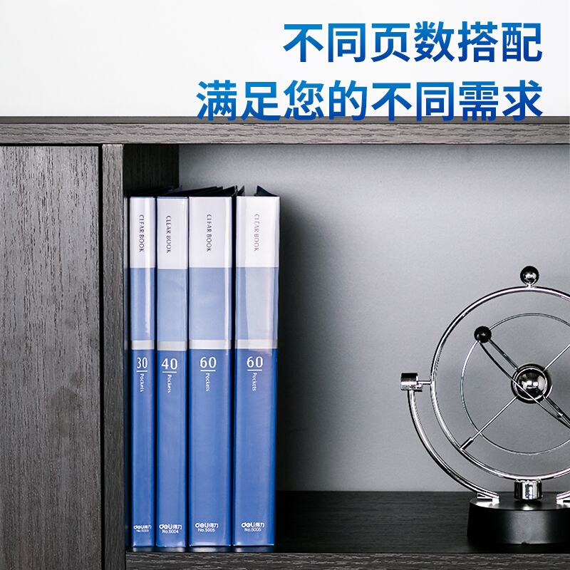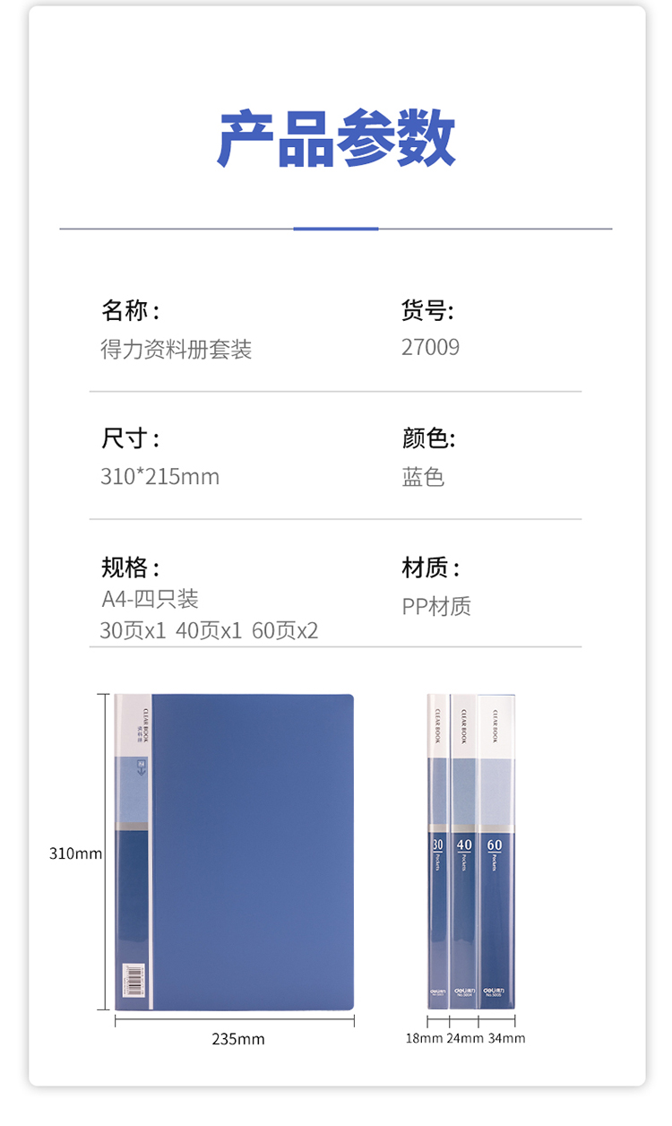 商品名称:得力(deli)4只组合资料册套装30页+40页+60页*2 文件收纳册插袋文件夹 27009