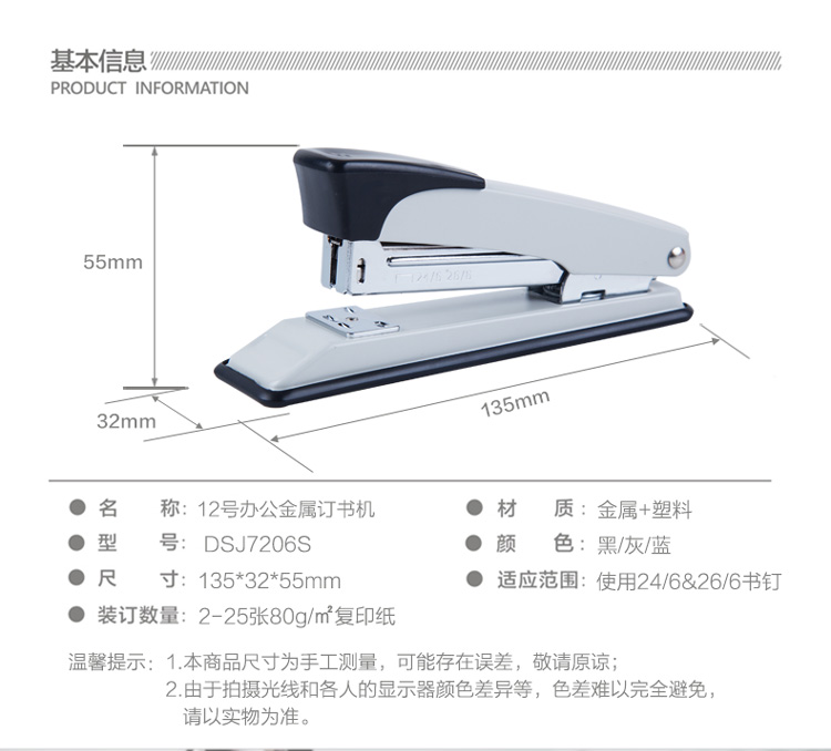 - 商品名称:广博(GuangBo)12#金属订书机订书器可暂订/办公用品 颜色随机 单个装DSJ7206S
