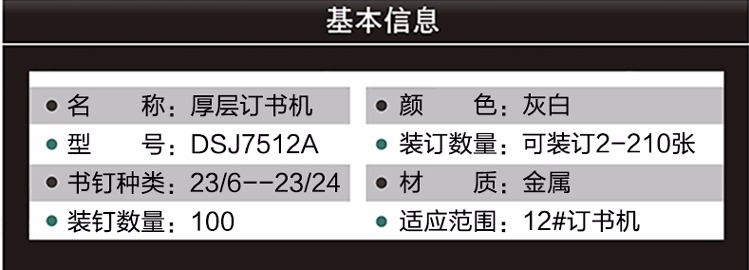 - 商品名称:广博(GuangBo)210页重型金属厚层订书机订书器办公文具DSJ7512A