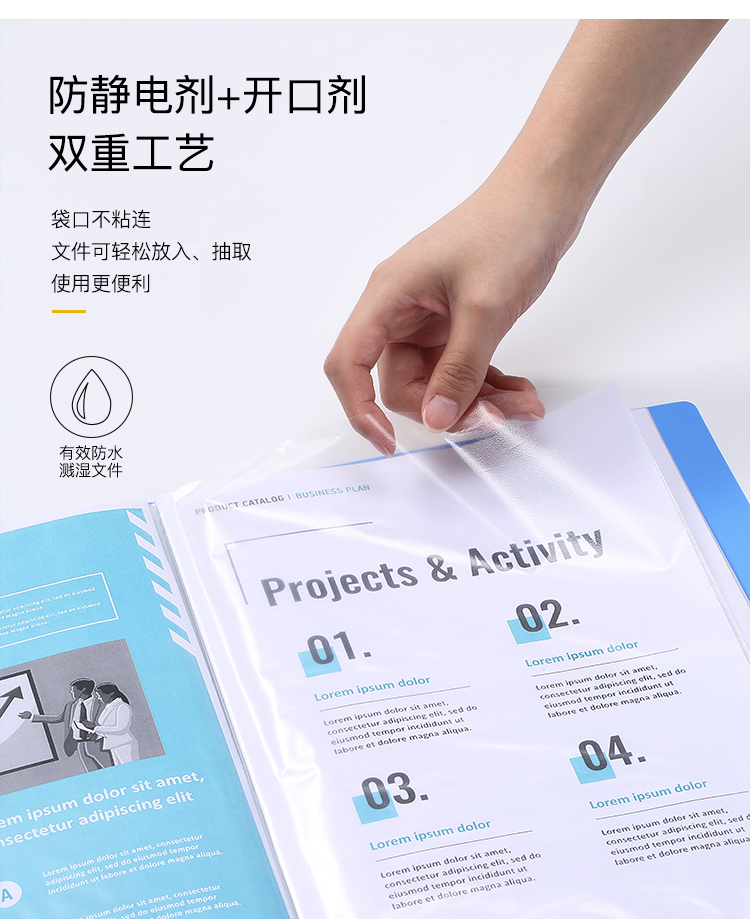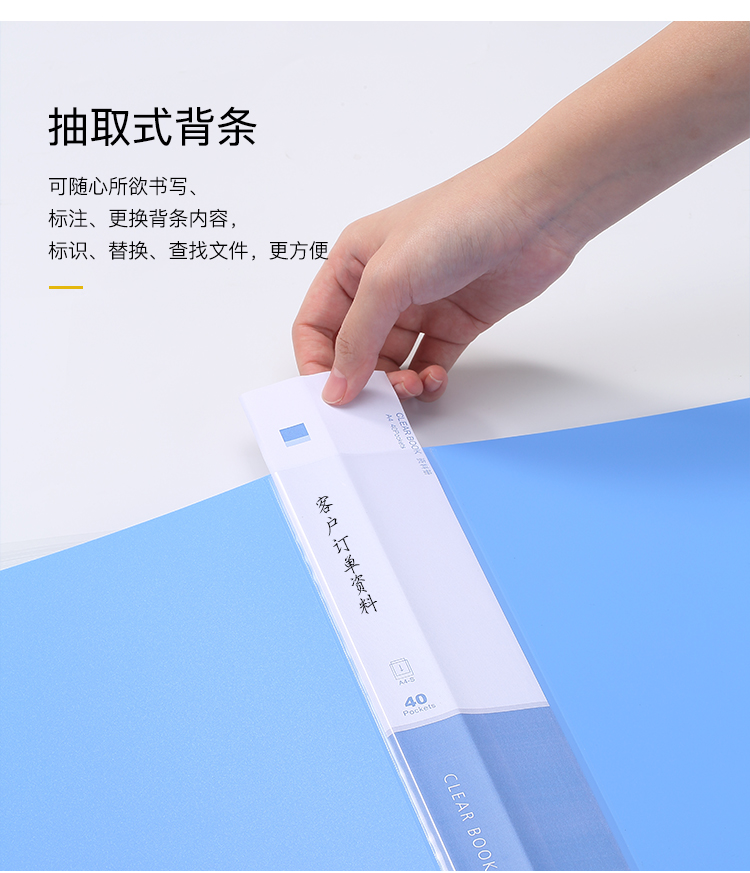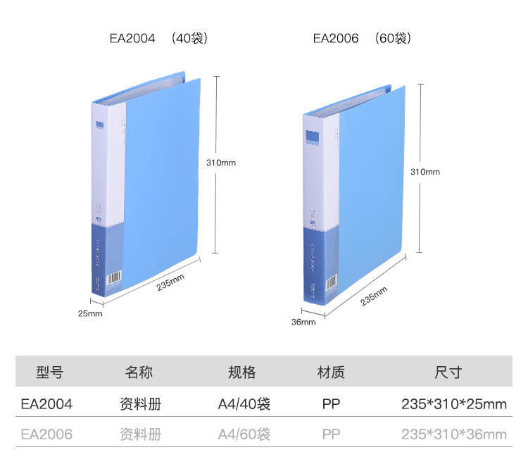 商品名称:齐心(Comix) 1只 40页资料册 插袋文件册 活页文件夹 文件收纳袋 档案活页收纳夹 蓝色EA2004