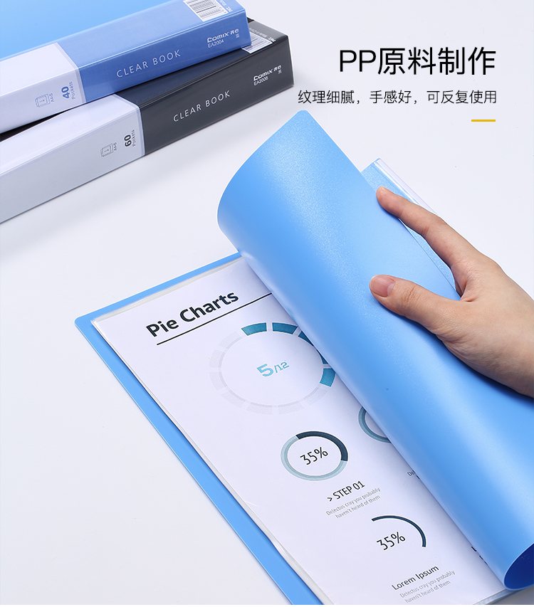 齐心(Comix) 1只 40页资料册 插袋文件册 活页文件夹 文件收纳袋 档案活页收纳夹 蓝色EA2004