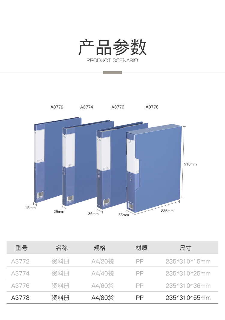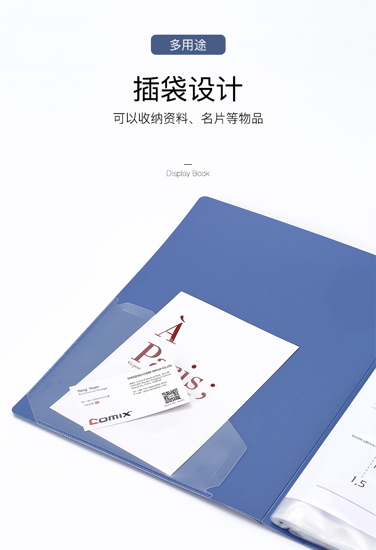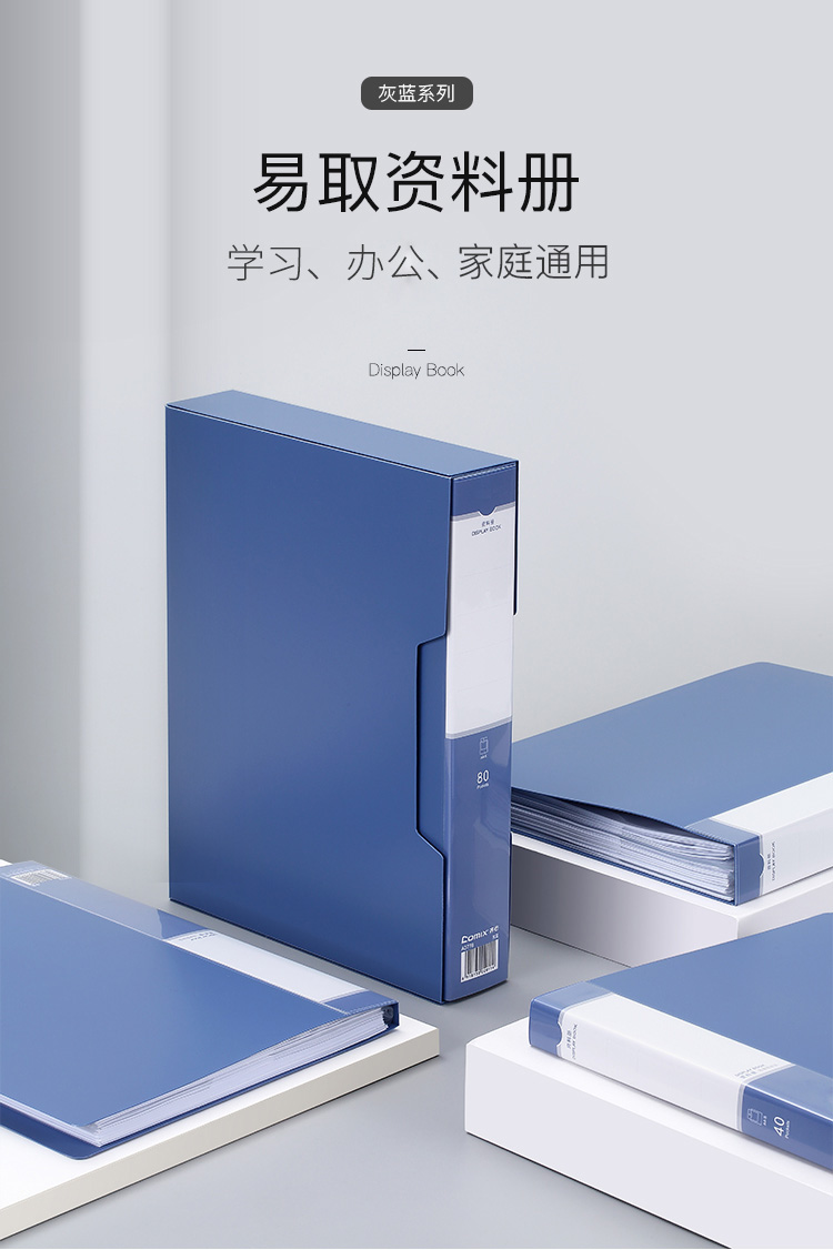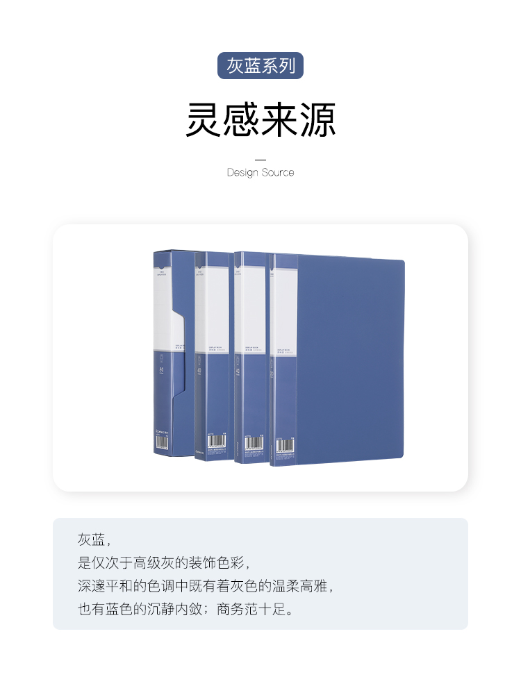 商品名称:齐心(Comix)A4/80页资料册/插袋文件册/活页文件夹/鲲鹏系列文件收纳袋 办公文具 灰蓝A3778