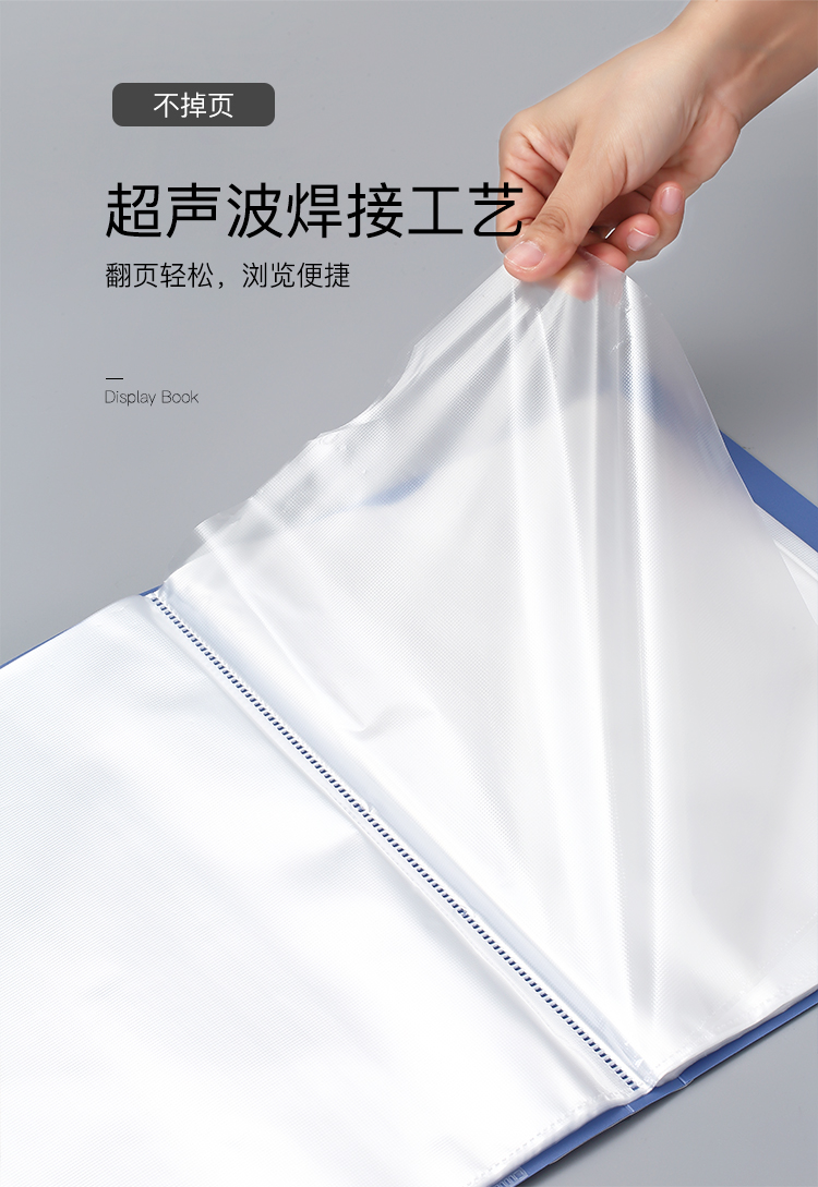 齐心(Comix)A4/80页资料册/插袋文件册/活页文件夹/鲲鹏系列文件收纳袋 办公文具 灰蓝A3778