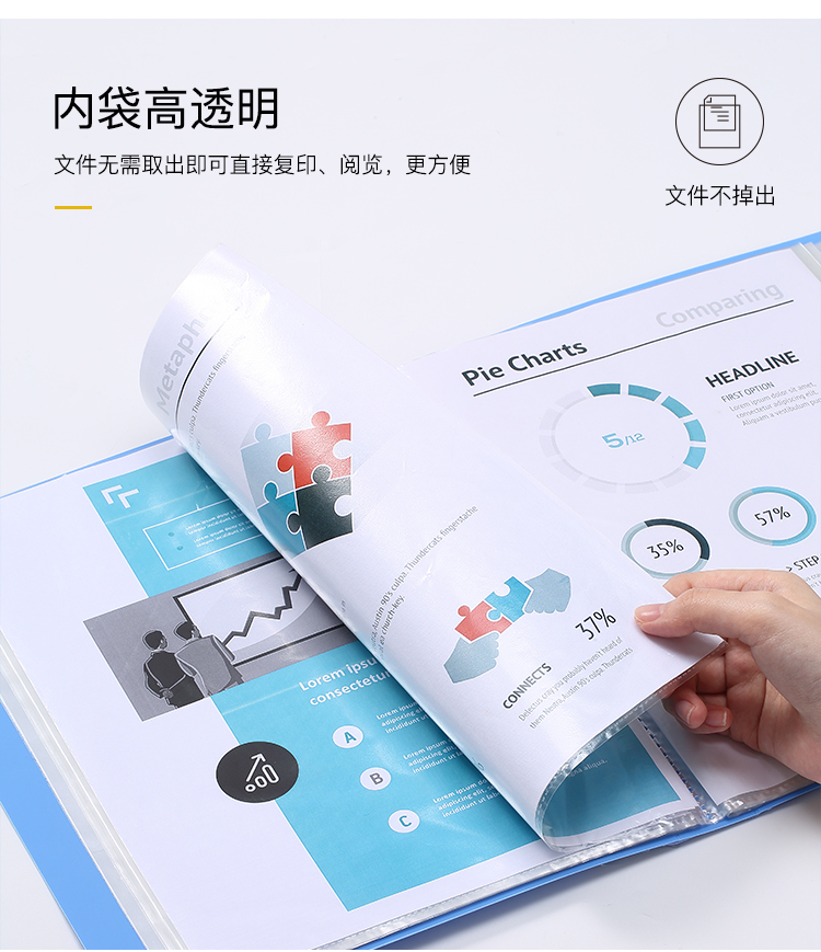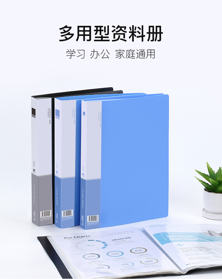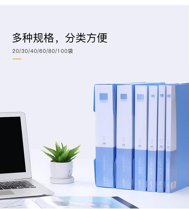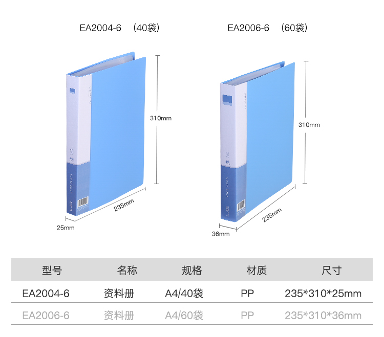 齐心(Comix)6只装 A4/40页资料册/插袋文件册/活页文件夹/文件收纳袋 蓝色 办公文具EA2004-6