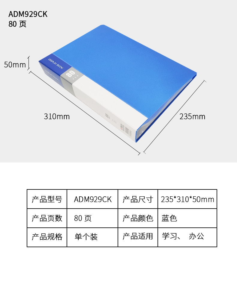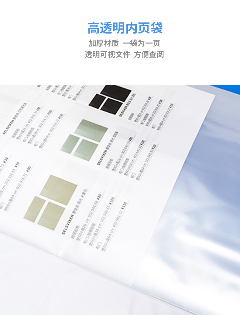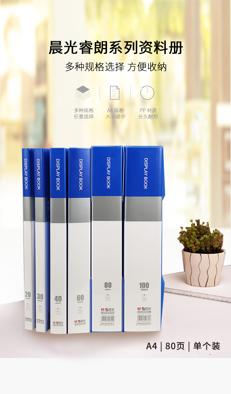 - 商品名称:晨光(M&G)文具A4/80页蓝色资料册 防水办公文件册 睿朗系列文件插页袋文件夹 单个装ADM929CKB