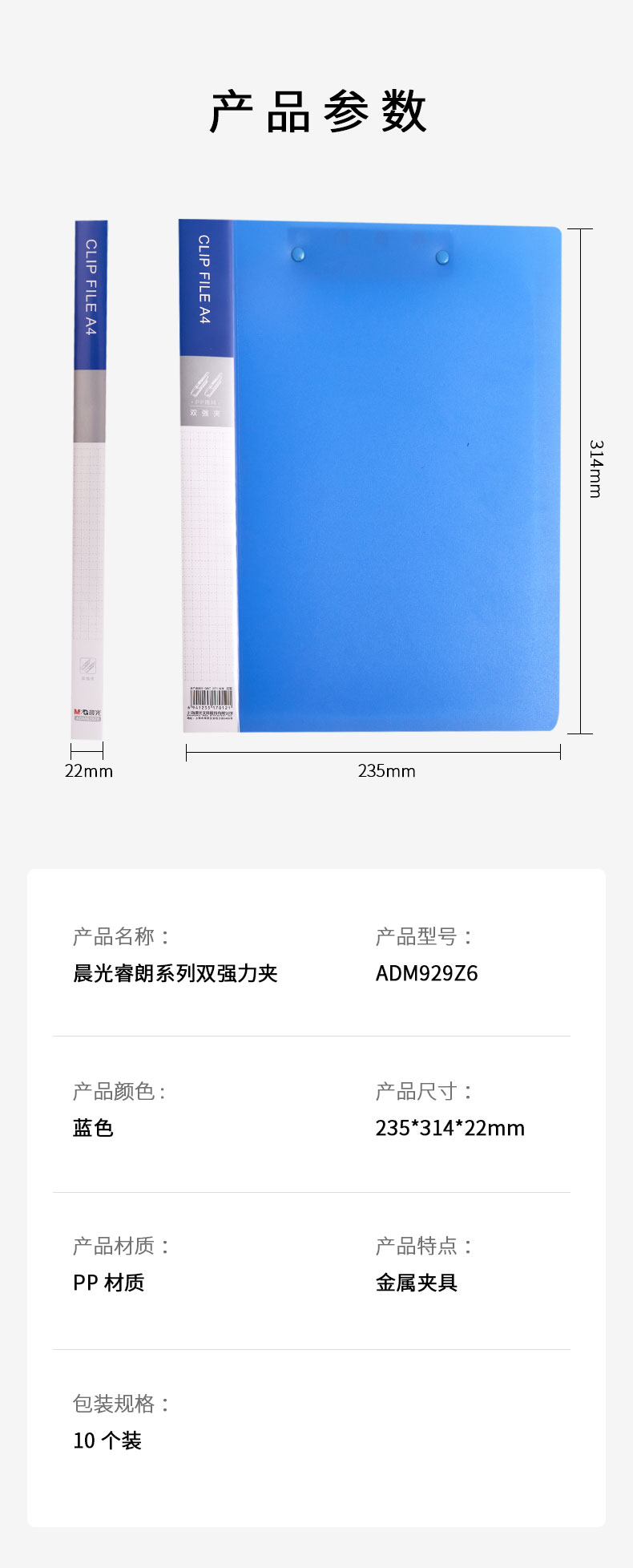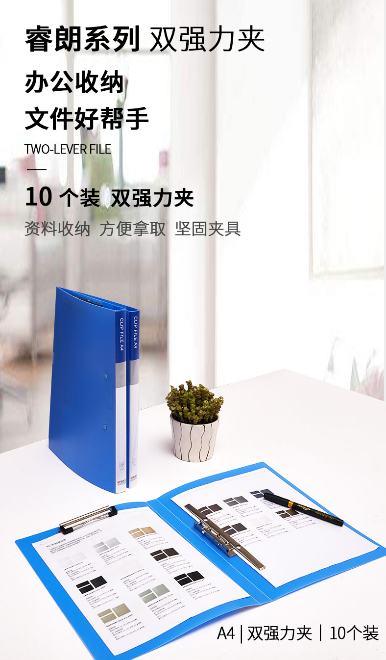 - 商品名称:晨光(M&G)文具A4蓝色双强力夹 办公文件夹资料夹 经济款文件收纳夹 10个装ADM929Z6