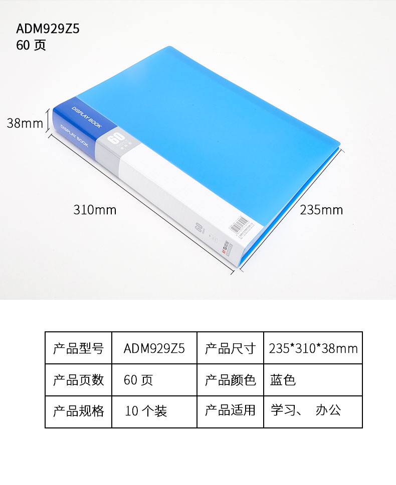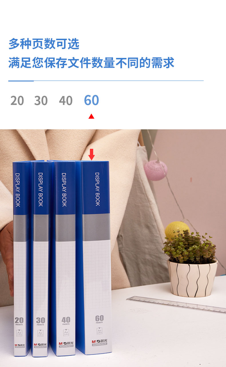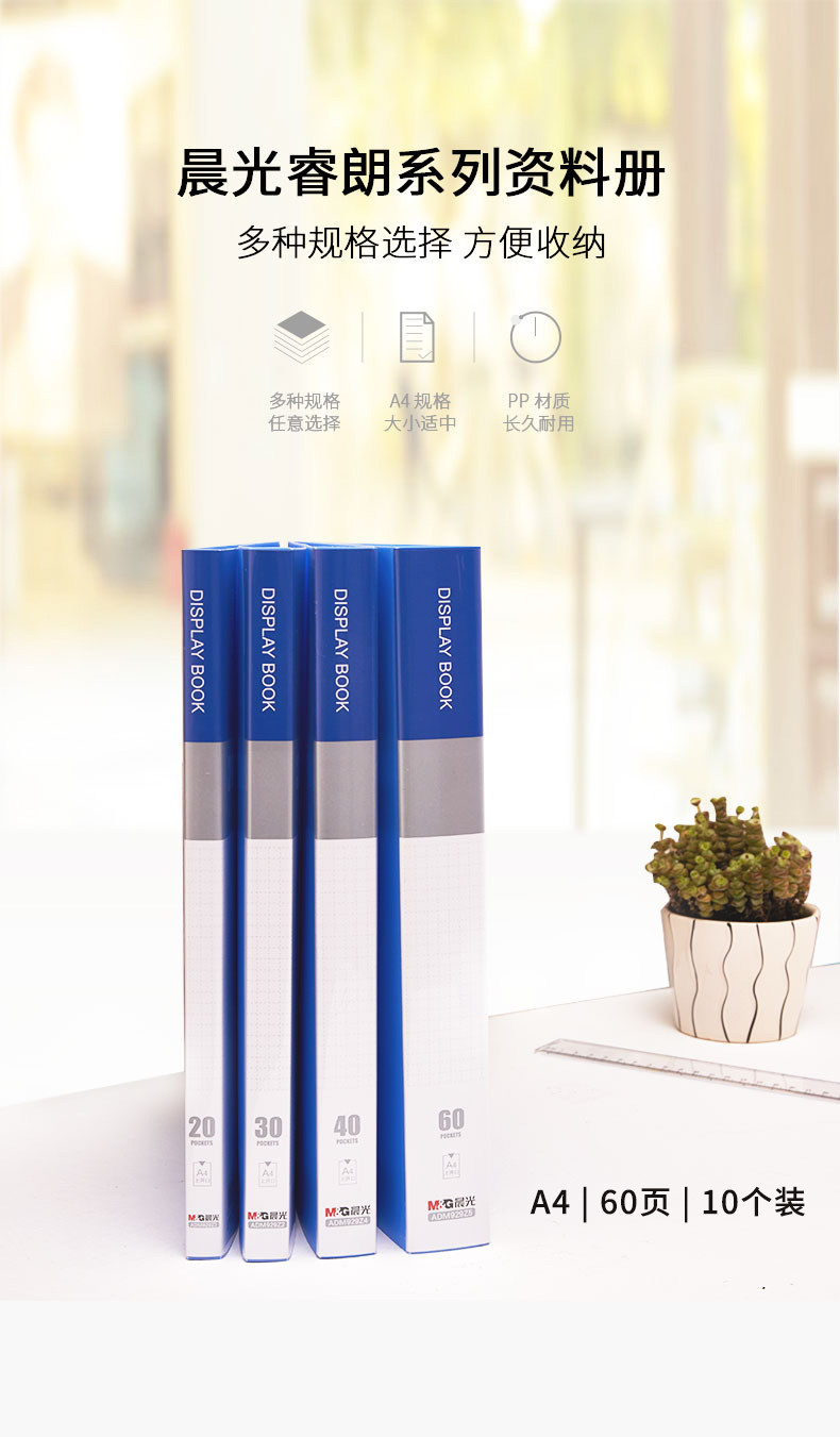 - 商品名称:晨光(M&G)文具A4/60页蓝色资料册 办公文件册 经济款防水文件插页袋文件夹 10个装ADM929Z5