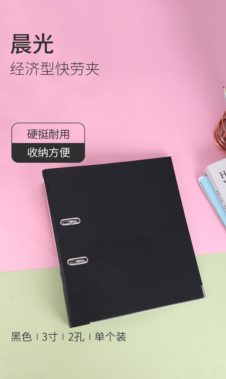 - 商品名称:晨光(M&G)办公黑色加厚型3寸快劳夹 经济型文件夹 单个装ADM95076